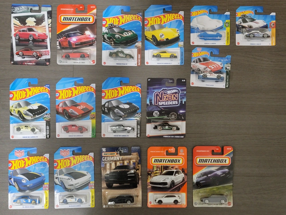 Brand New & Sealed. (TOP) - $9 | HW Silver Series '67 Porsche 911 R - $3 | MBX Porsche 911 Targa - $3 | HW Porsche 911 Rallye (Green) - $4 | HW Porsche 911 Carrera RS 2.7 (Yellow) - $4 | HW Porsche 911 Carrera (Keychain) ; Long card also available. - $4 | HW '71 Porsche 911 - $4 | HW Porsche 911 Rallye (White & Blue) (MIDDLE) - $3 | Porsche 904 Carrera GTS (Creamy Yellow) - $3 | Porsche 904 Carrera GTS (Red) ; Short card also available. - $4 | Porsche 904 Carrera GTS (Black) - $8 | HW Neon Speeders Porsche 934 Turbo RSR (BOTTOM) - $4 | HW '96 Porsche Carrera (Blue) - $3 | HW '96 Porsche Carrera (White) - $5 | MBX Germany Series Porsche Cayenne Turbo - $3 | MBX Porsche Cayenne Turbo (White) - $3 | MBX Porsche Cayenne Turbo (Purple) Pickup in Markham (Warden & Hwy 7) Shipping available (buyer covers shipping cost) add $1.5 for a protector case if purchasing.