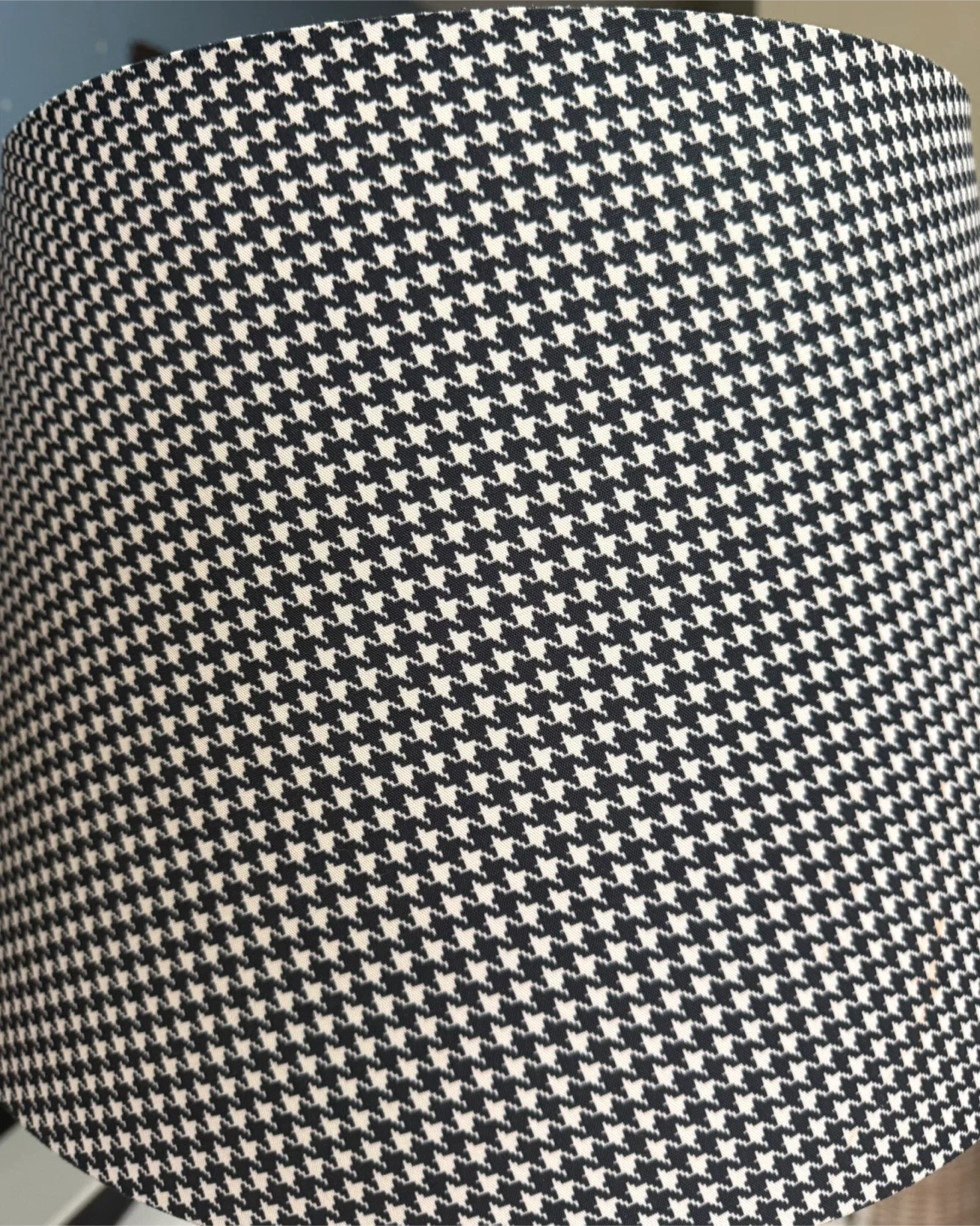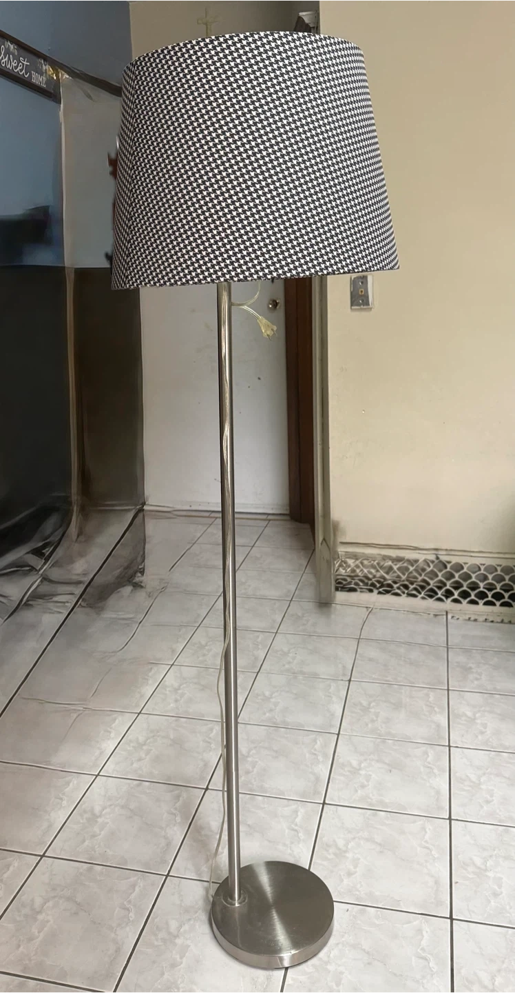 10Selling a floor lamp with a houndstooth patterned shade! The base is a sleek silver colour. It's in good condition.