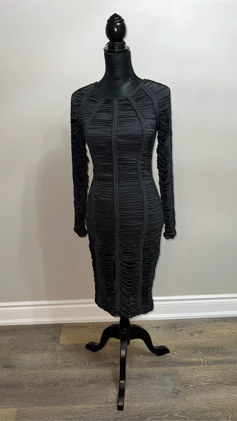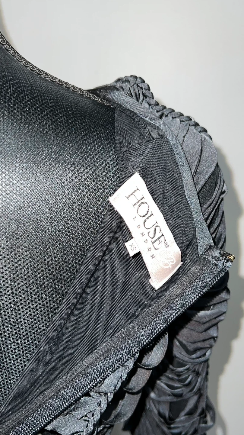 10Selling a House of London dress in black. It's a size XS and has a unique, stylish design. Perfect for a night out or special occasion! Purchase price $289 + HST 7/10 Condition