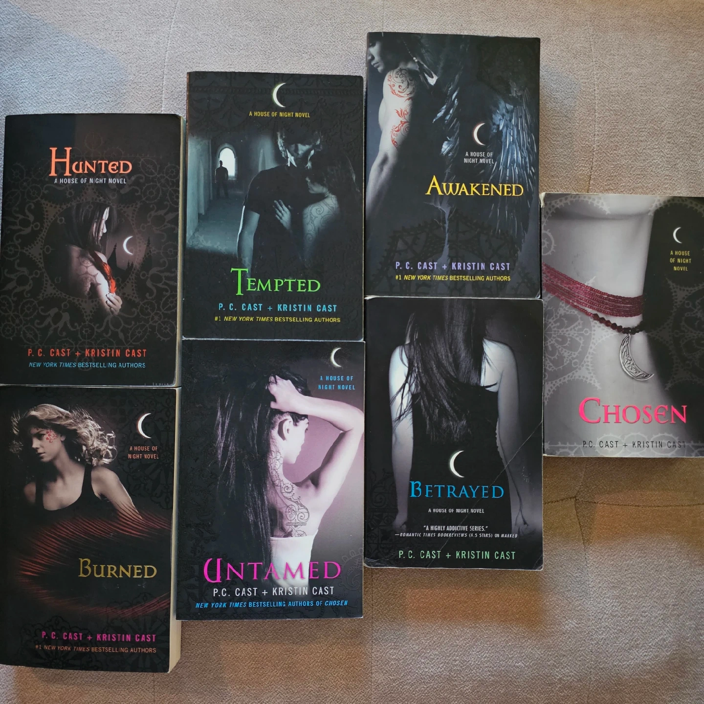 55Selling a set of House of Night novels by P.C. Cast and Kristin Cast! Titles include Hunted, Tempted, Awakened, Burned, Untamed, Betrayed and Chosen. Perfect for fans of the series or anyone looking for a new read