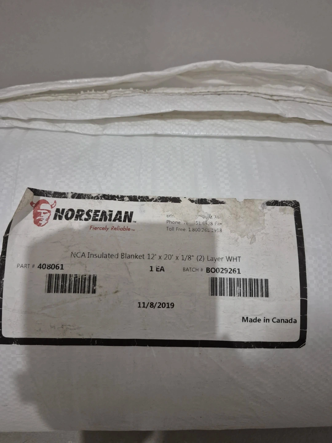 This NORSEMAN insulated blanket measures 12' x 20' and is 1/8" Layer WHT. It's a 2-layer white blanket made in Canada. It's useful for protecting surfaces during renovations or construction. Great for keeping areas warm! It has not been used. Asking $50. Pick-up location 333 Taralake Way NE.