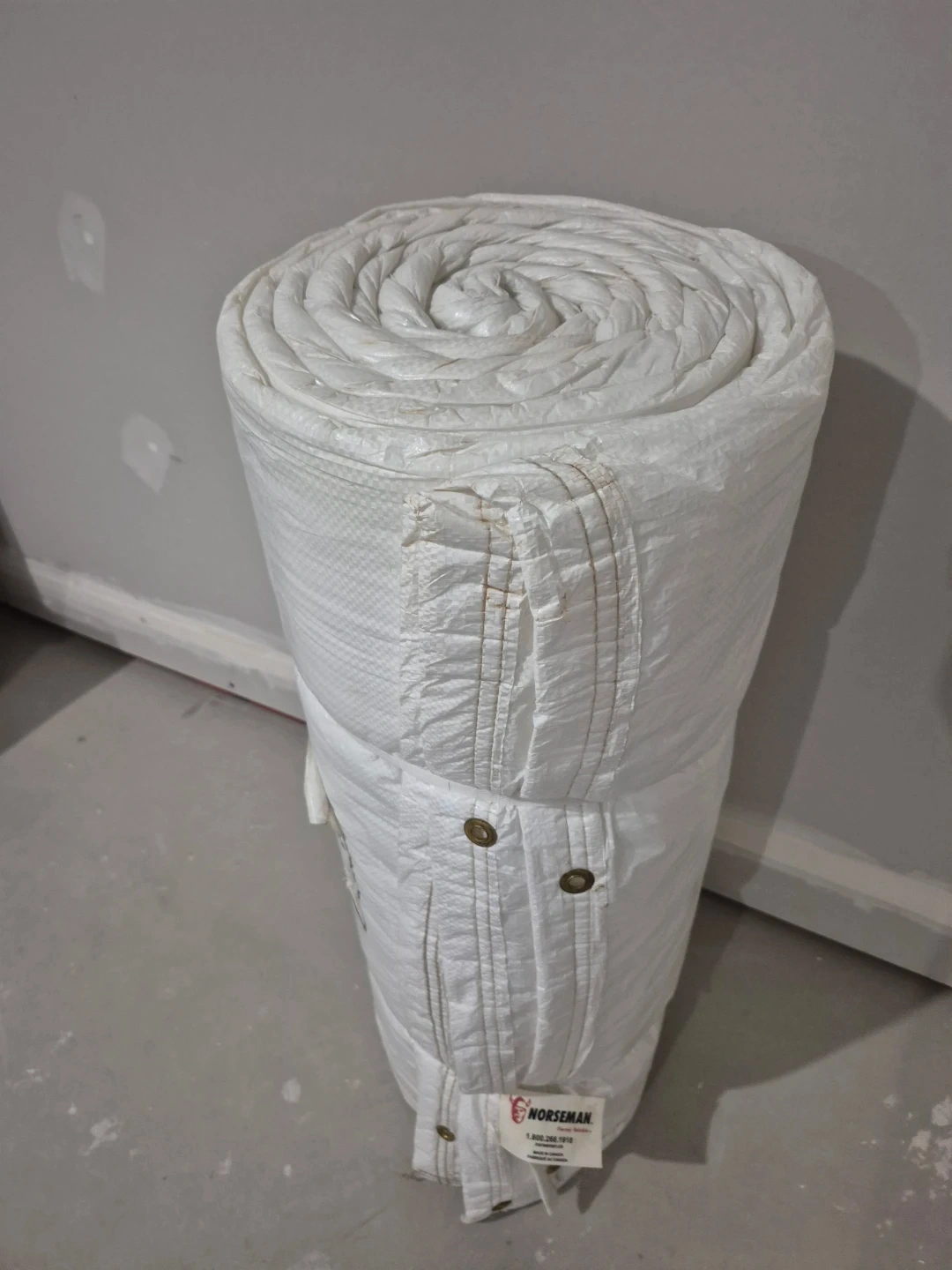 This NORSEMAN insulated blanket measures 12' x 20' and is 1/8" Layer WHT. It's a 2-layer white blanket made in Canada. It's useful for protecting surfaces during renovations or construction. Great for keeping areas warm! It has not been used. Asking $50. Pick-up location 333 Taralake Way NE.