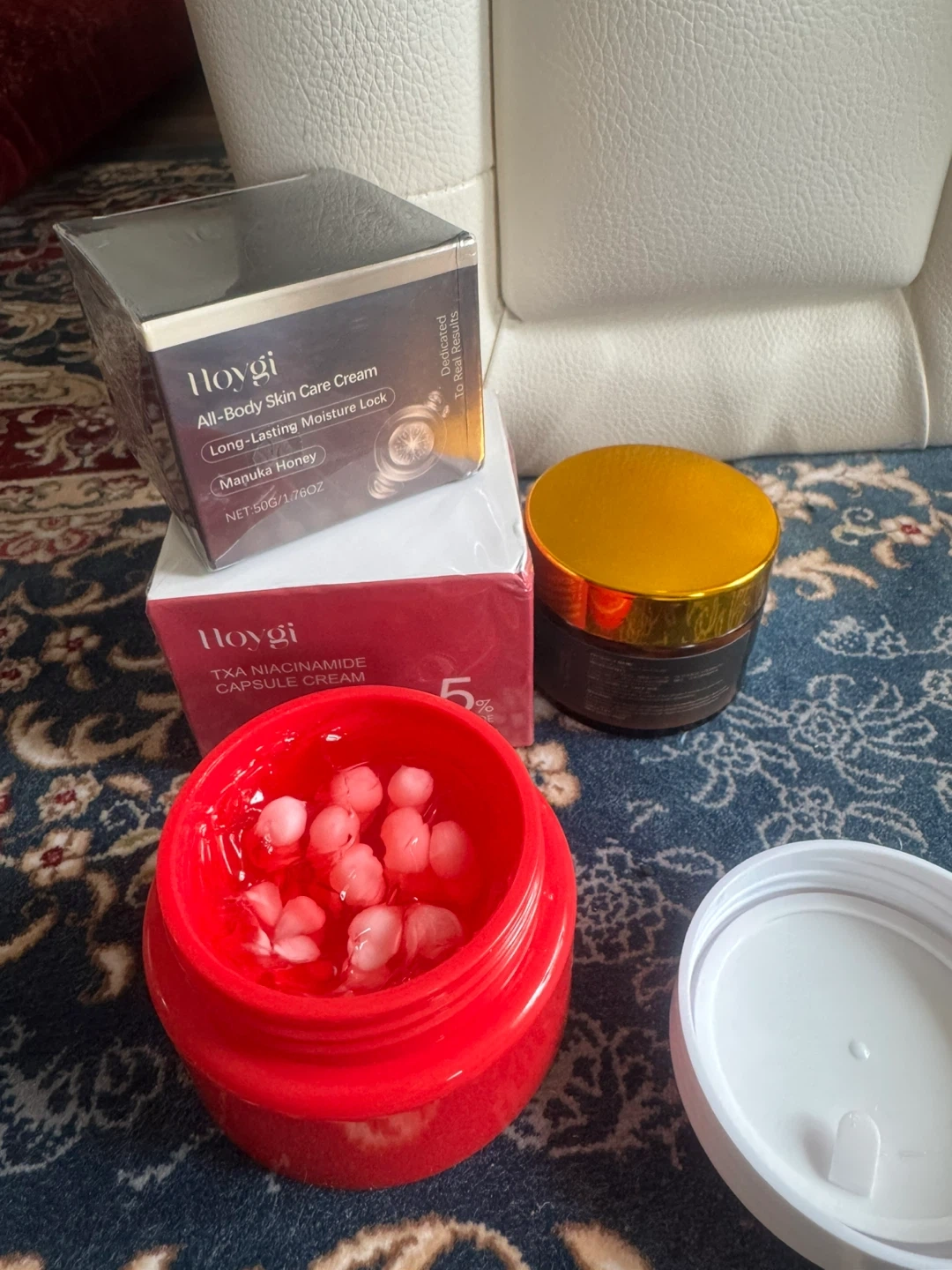 40I have a Hoygi All-Body Skin Care Cream with Long-Lasting Moisture Lock and Manuka Honey. The net weight is 50g/1.76oz. Also included is a Hoygi TXA Niacinamide Capsule Cream.