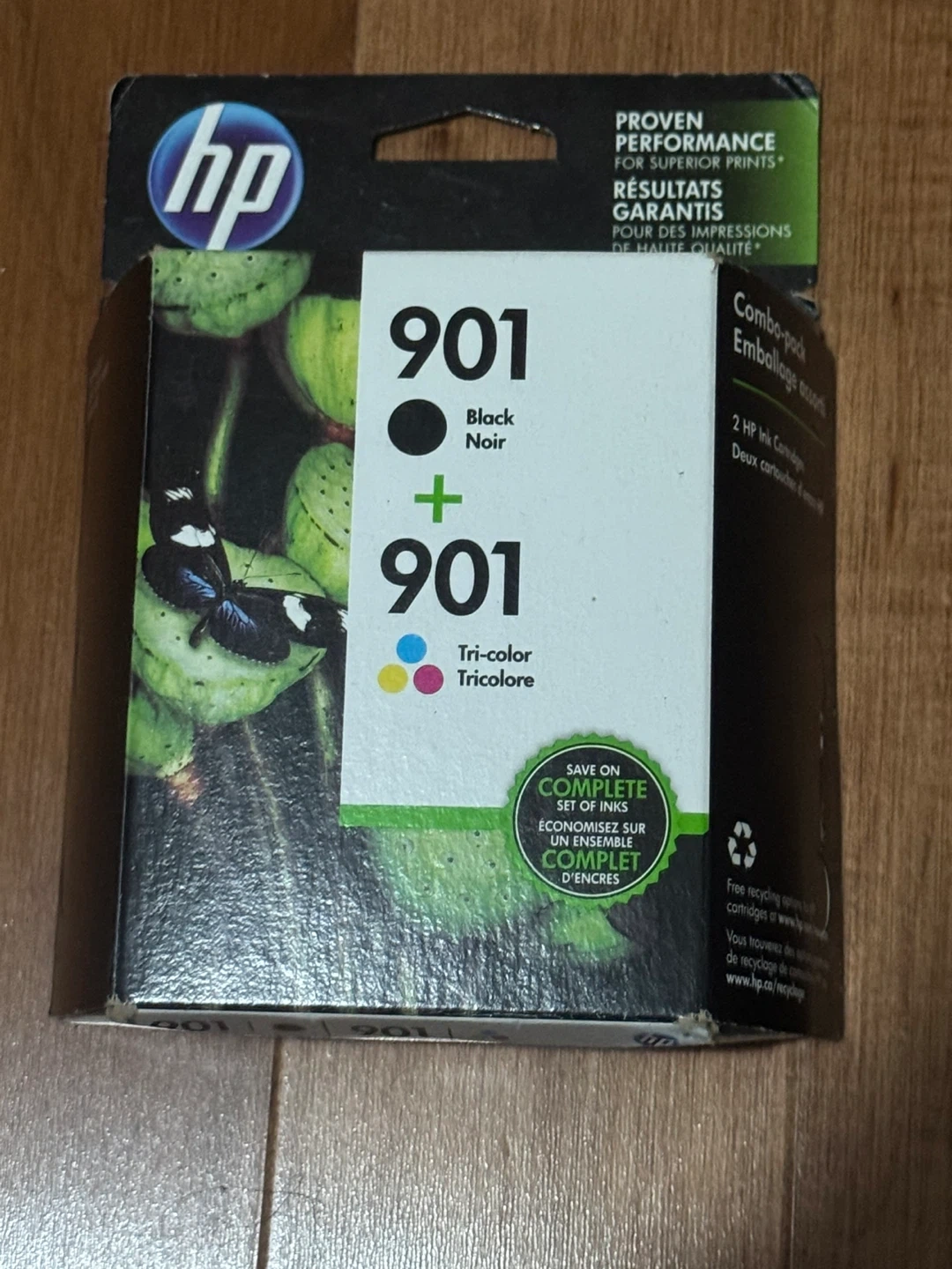 Selling a combo pack of HP 901 ink cartridges! This includes one black ink cartridge and one tri-color ink cartridge. Save on a complete set of inks! $100 for brand new sealed 901 Ink Cartridges Black/Color Combo Pack The area to pick it up at Etobicoke, Rexdale and Kipling First come serve first!
