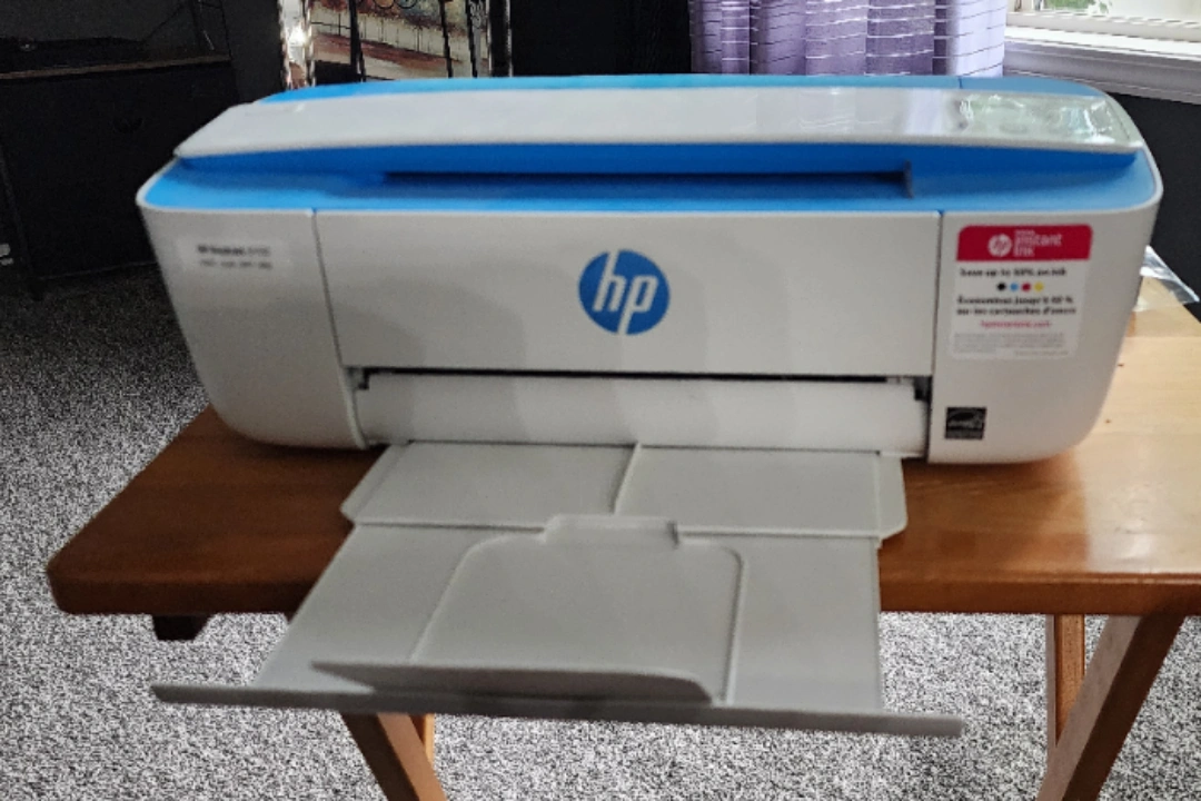 Selling an HP DeskJet 3755 printer in a nice blue and white colour scheme! It's a print, scan, copy, and web printer. Great for home or office use
