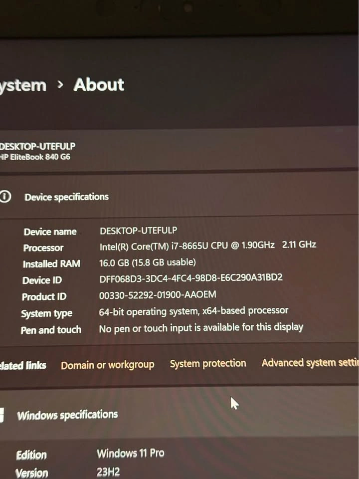 119HP EliteBook 840 G6 16 GB RAM 512 GB ssd i7 pro processor