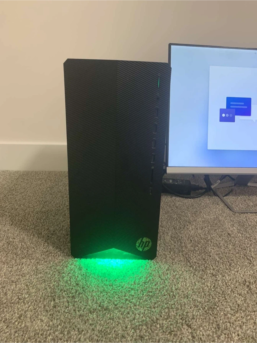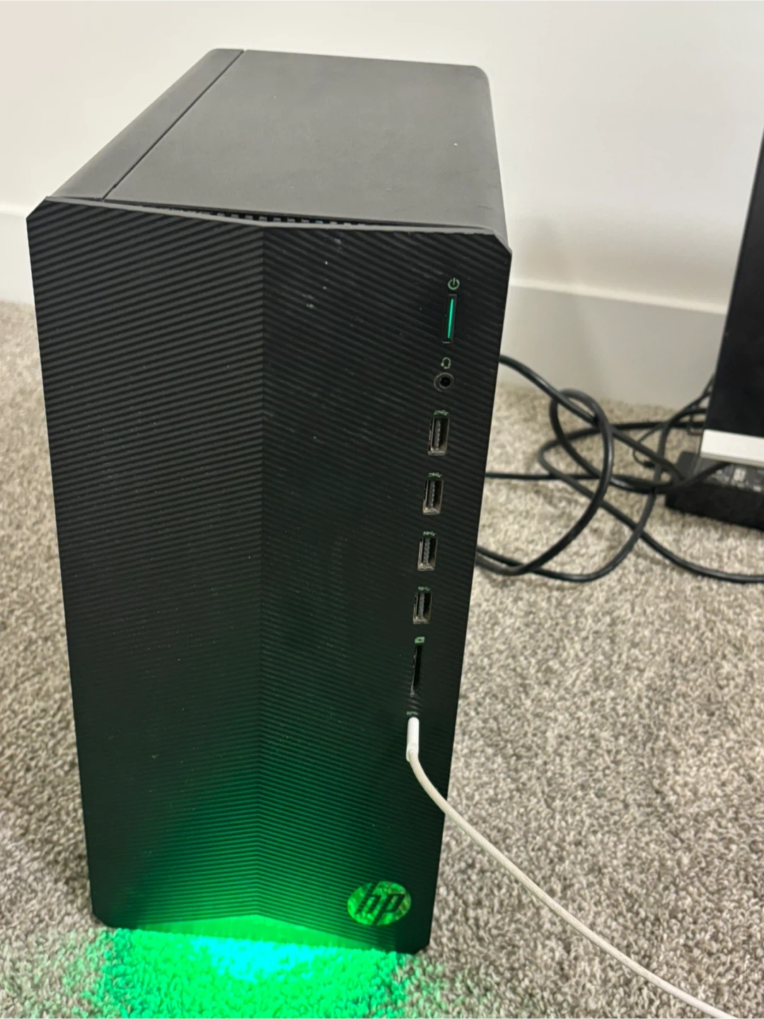 10Selling an HP desktop PC. It's black with a green light at the bottom. There are multiple USB ports on the front. A power cable is included HP Pavilion Gaming Desktop Specs: -AMD 6-core Ryzen 5 5600 processor -Nvidia Geforce GTX 1650 (With 8GB) Super Graphics Card -16GB Ram -1tb SSD GB Storage Need gone asap Will deliver anywhere in Calgary for a little bit fee Need gone asap MY NUMBER IS 5877002246