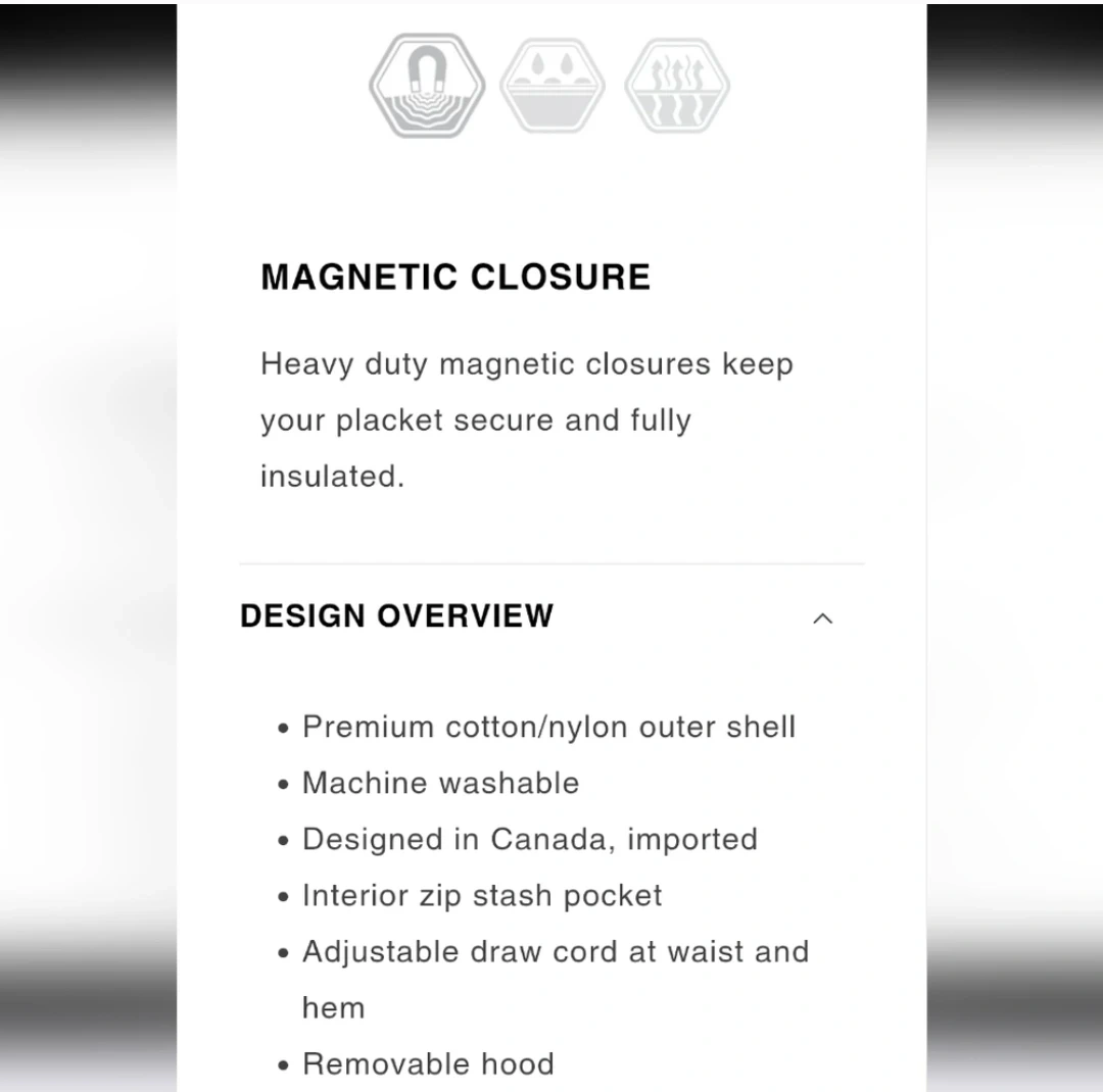 Selling a Nobis red jacket in size S/P. It features a premium cotton/nylon outer shell, machine washable design, and is designed in Canada. It also includes an interior zip stash pocket, adjustable draw cord at the waist and hem, and a removable hood. The jacket has heavy-duty magnetic closures to keep your placket secure and fully insulated