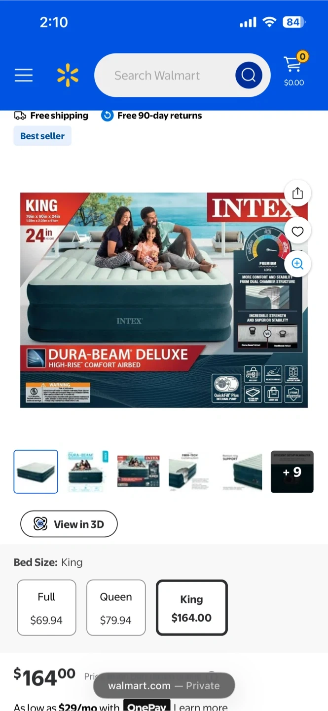 This is an INTEX Dura-Beam Deluxe air mattress in King size. It's built with a durable, high-rise comfort airbed construction. The airbed is made for increased comfort and stability.