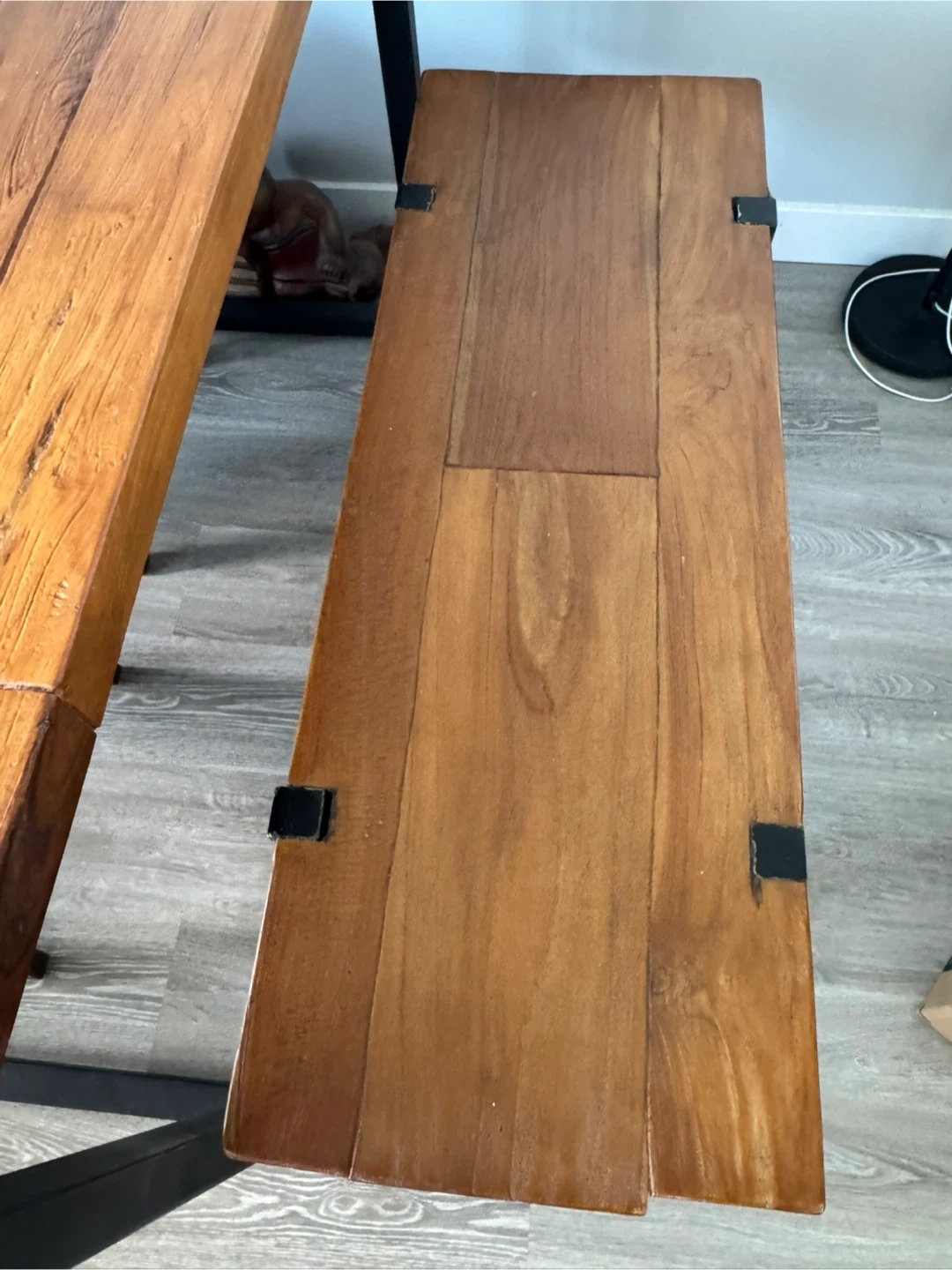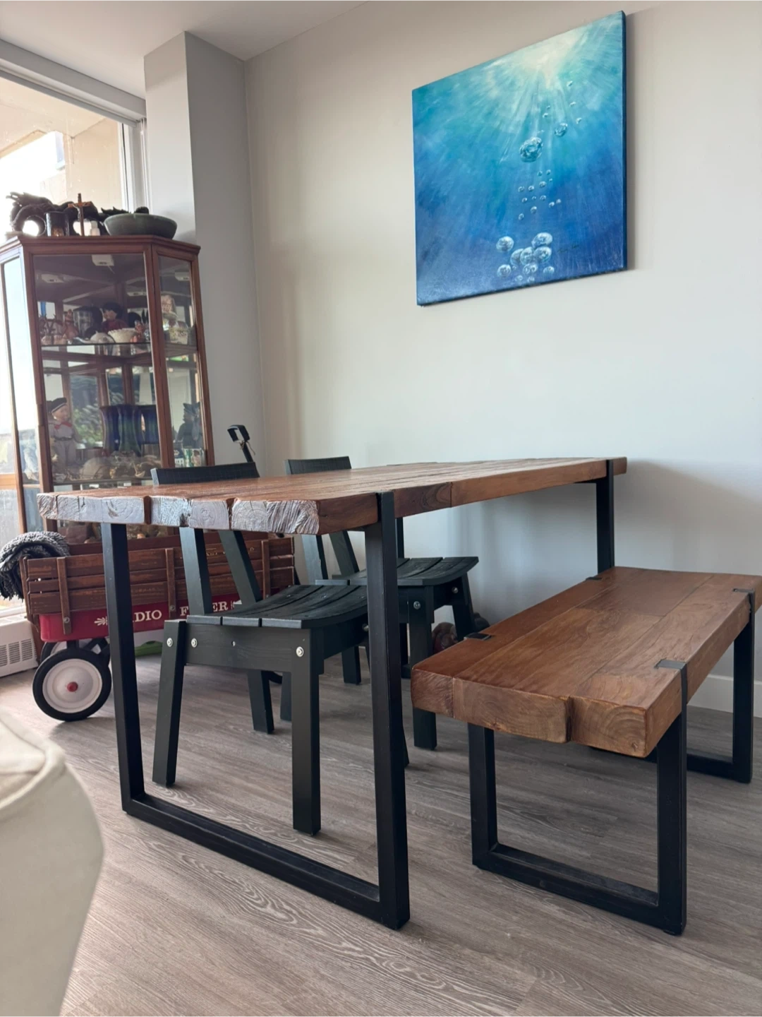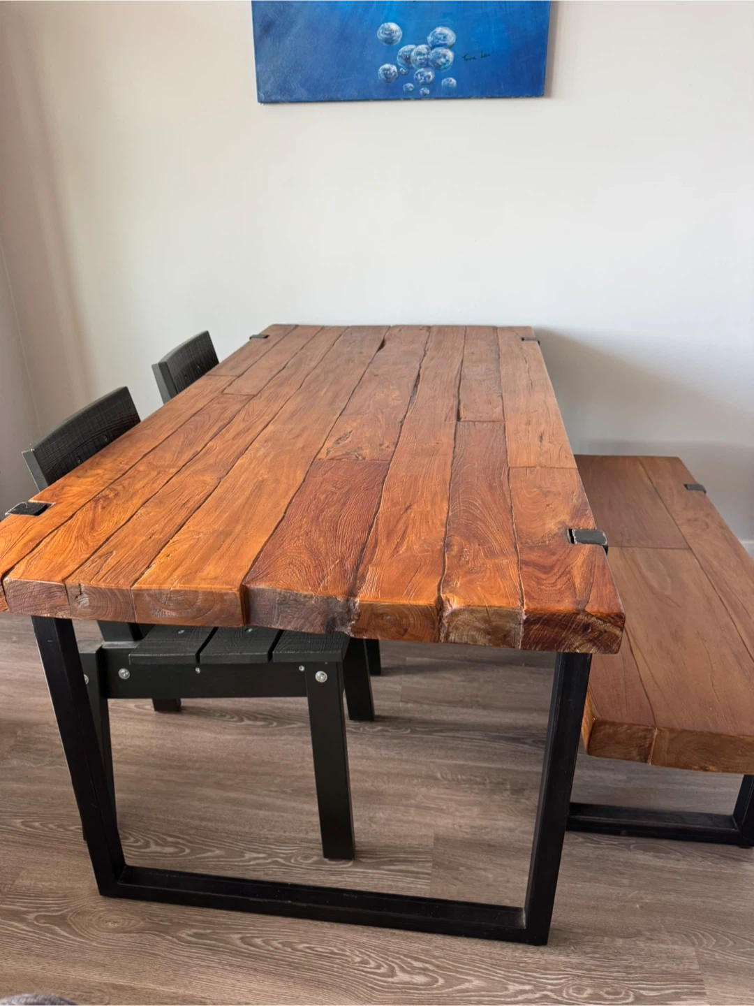 Solid Wood Dining Table and Bench with Metal Legs
