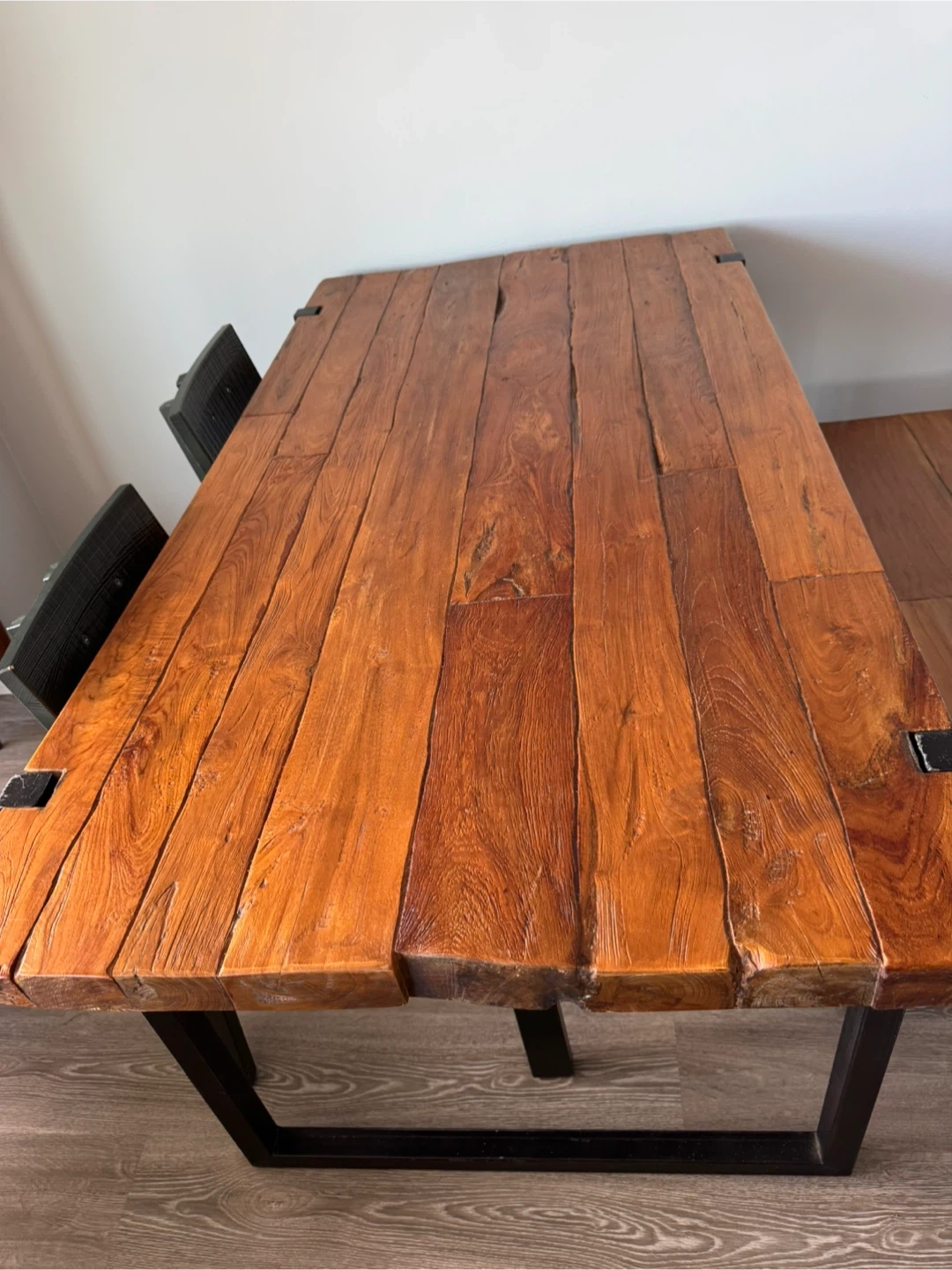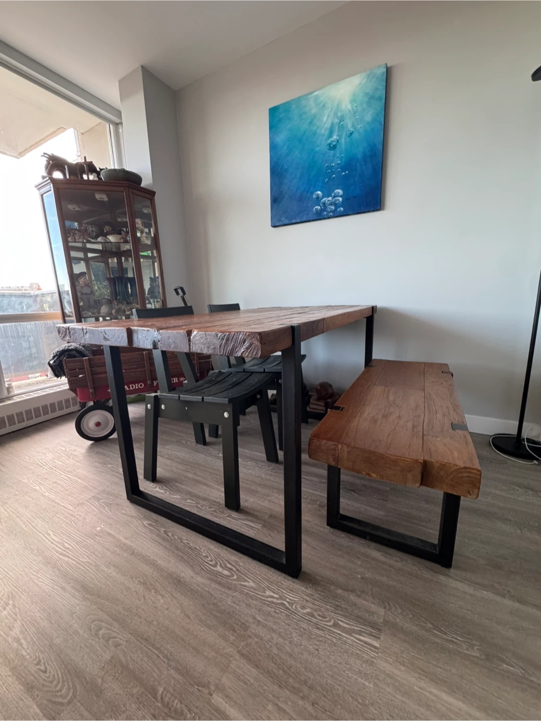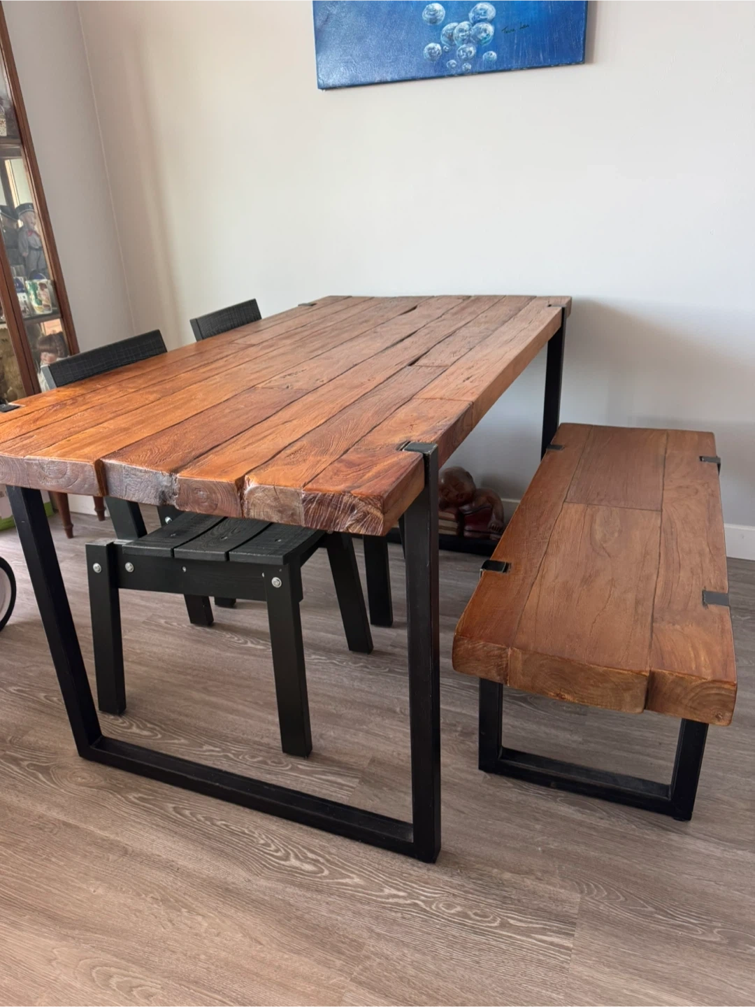 Solid Wood Dining Table and Bench with Metal Legs