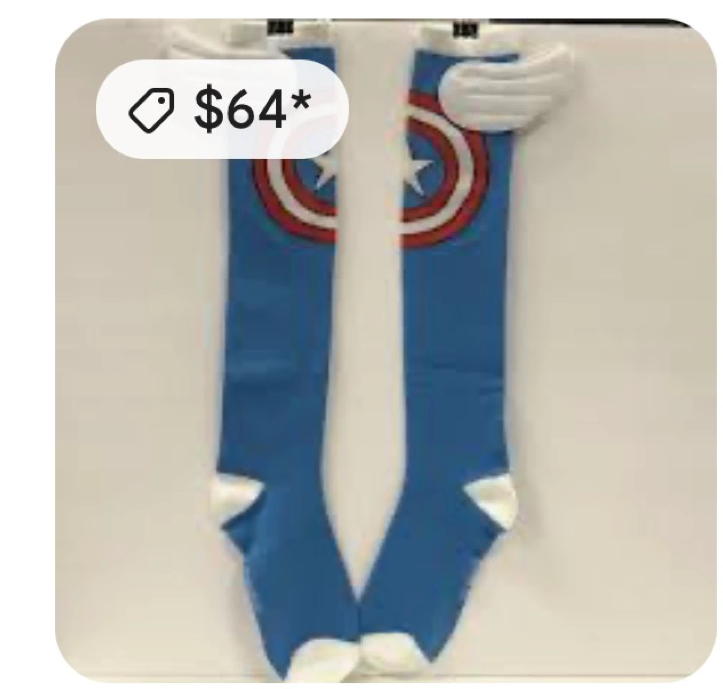 These knee-high socks feature Captain America's shield design and cute white wings. They're a fun addition to any Marvel fan's collection. Made from a comfortable fabric blend.
