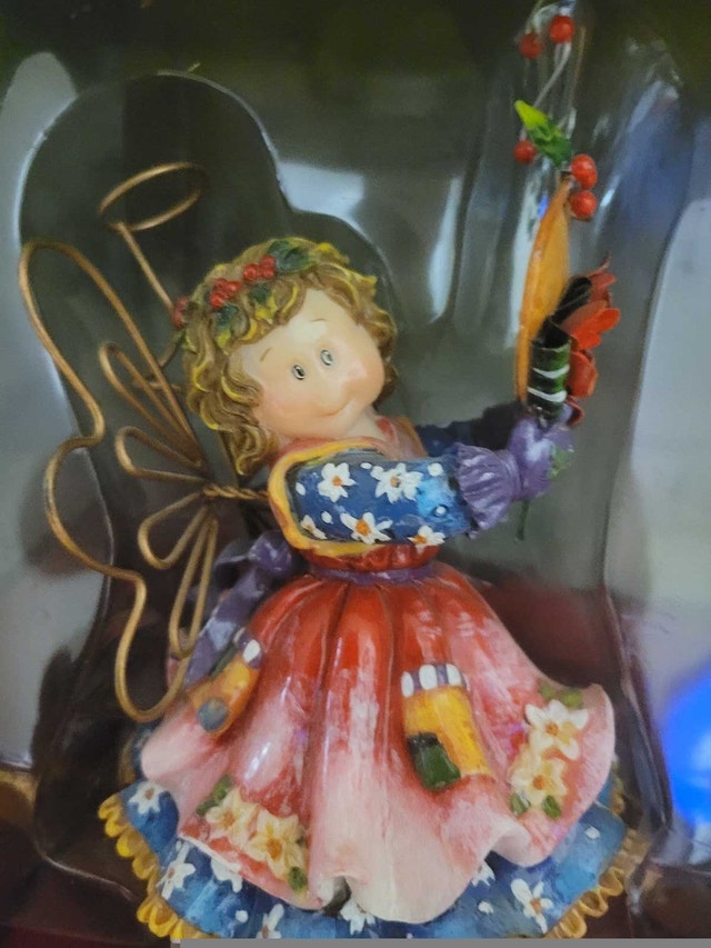 For sale we have this new Floral Flowers Garden Angel Christmas stocking Holder Hanger. In New condition. Ready for that special stocking. Nice and heavy to stay on the shelf. Measures approx. 8" tall x 4 1/2" wide. The base measures 3 1/2" x 2 1/4". The hanger part moves in and out. Asking $15 pick up on beaverbrook lane Kanata thank you