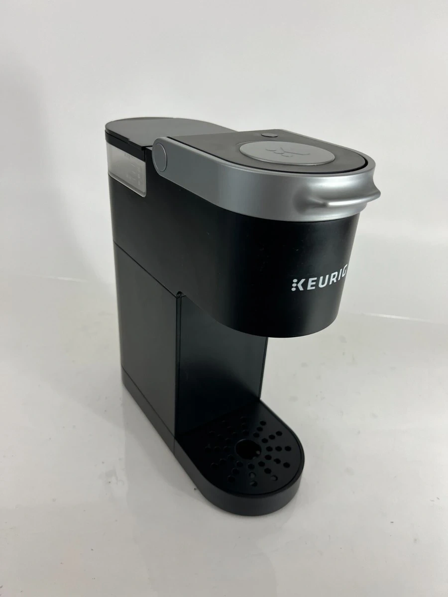 This is a black Keurig coffee maker. It has a sleek design and a compact footprint. Perfect for making a quick cup of coffee!