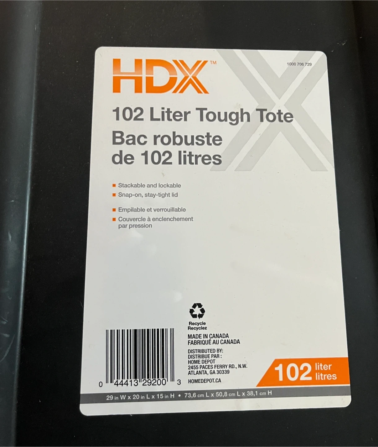 Buy & SellLarge 102 Litre storage binLarge 102 Litre storage binFreeHDX 102 Litre Tough Tote in black with a yellow lid. It's stackable with a snap-on, stay-tight lid. Dimensions: 29 in x 20 in x 15 inWHERE TO MEET109 Front St EastView MapSELLERverifiedJolanOld Toronto36629 reviews1 chats·2 favorites·69 viewsSEND CHAT TO SELLERHi Jolan! I’m interested in your listing.Hi Jolan! I’m interested in your listing.Get the Karrot app to chatSign In to chat
