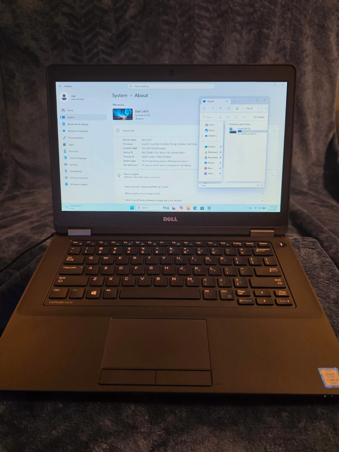 Selling a Dell Latitude E5470 laptop. WINDOWS 11 Pro . It has an Intel(R) Core(TM) i5-6200U CPU @ 2.30GHz (2.40 GHz) processor and 20.0 GB (19.9 GB usable) of installed RAM. It comes with a 64-bit operating system and an x64-based processor. The device ID is B0C7DA89-C72C-4D53-A7E2-5E3E61ED1E11 and the product ID is 00342-50482-73160-AAOEM. It has 411 GB free of 464 GB.