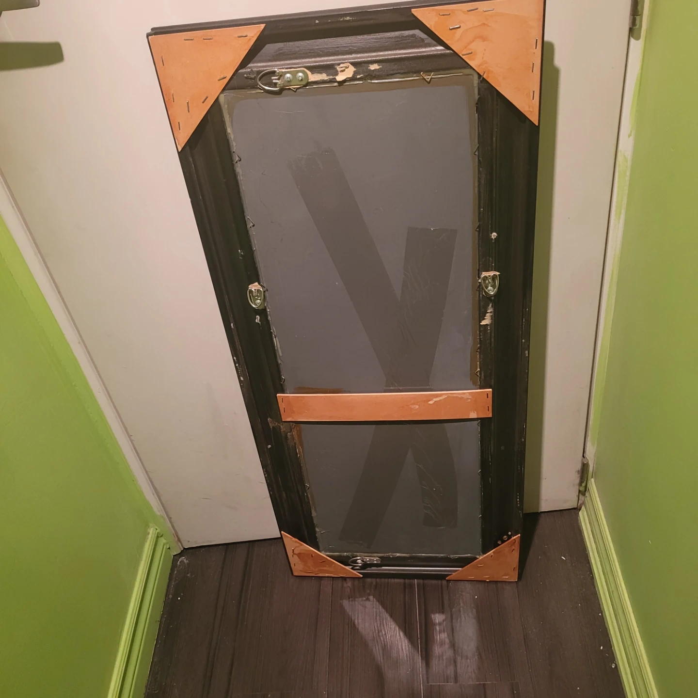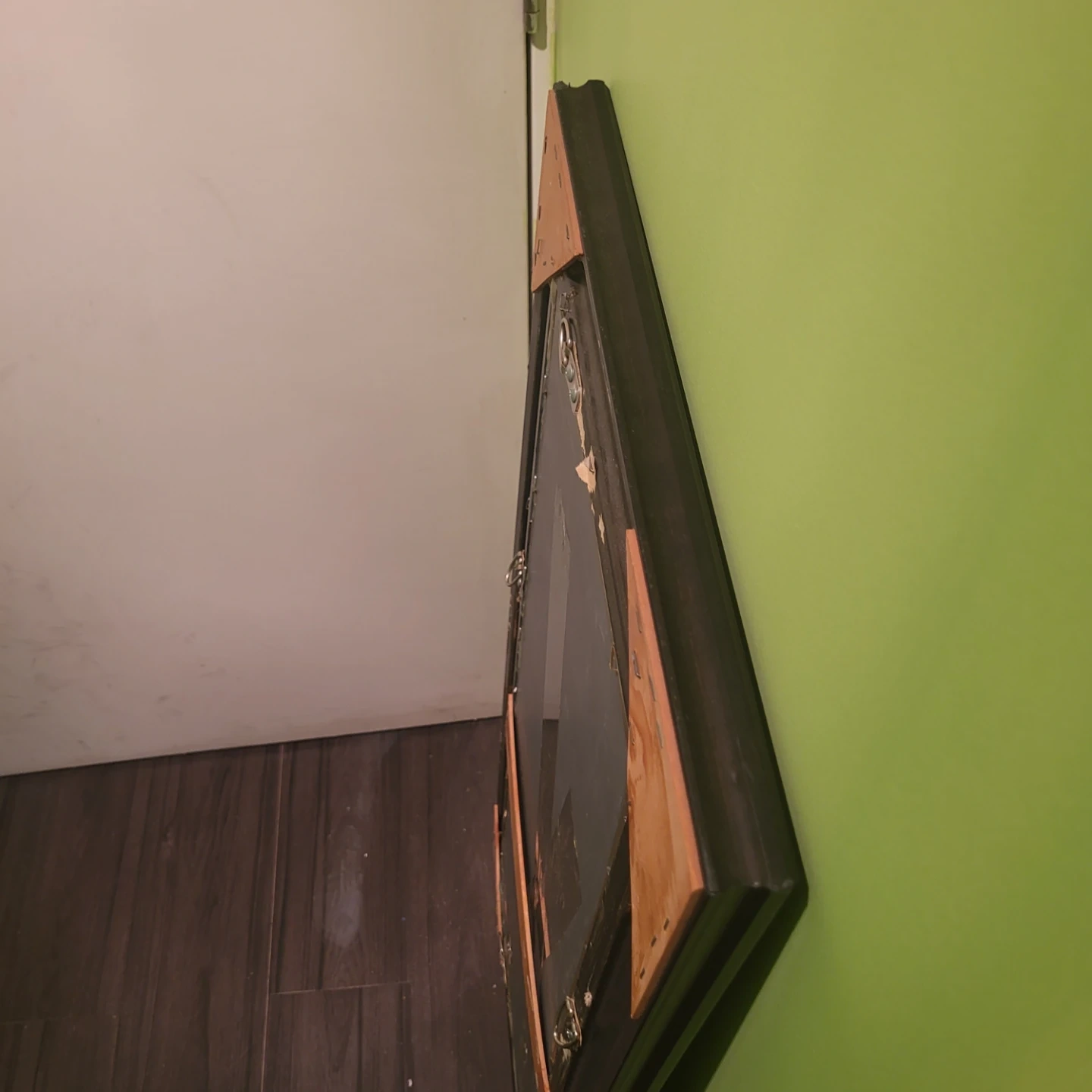 Selling a framed wall mirror. It has a dark frame with decorative details. It's in good condition and ready to hang in your home