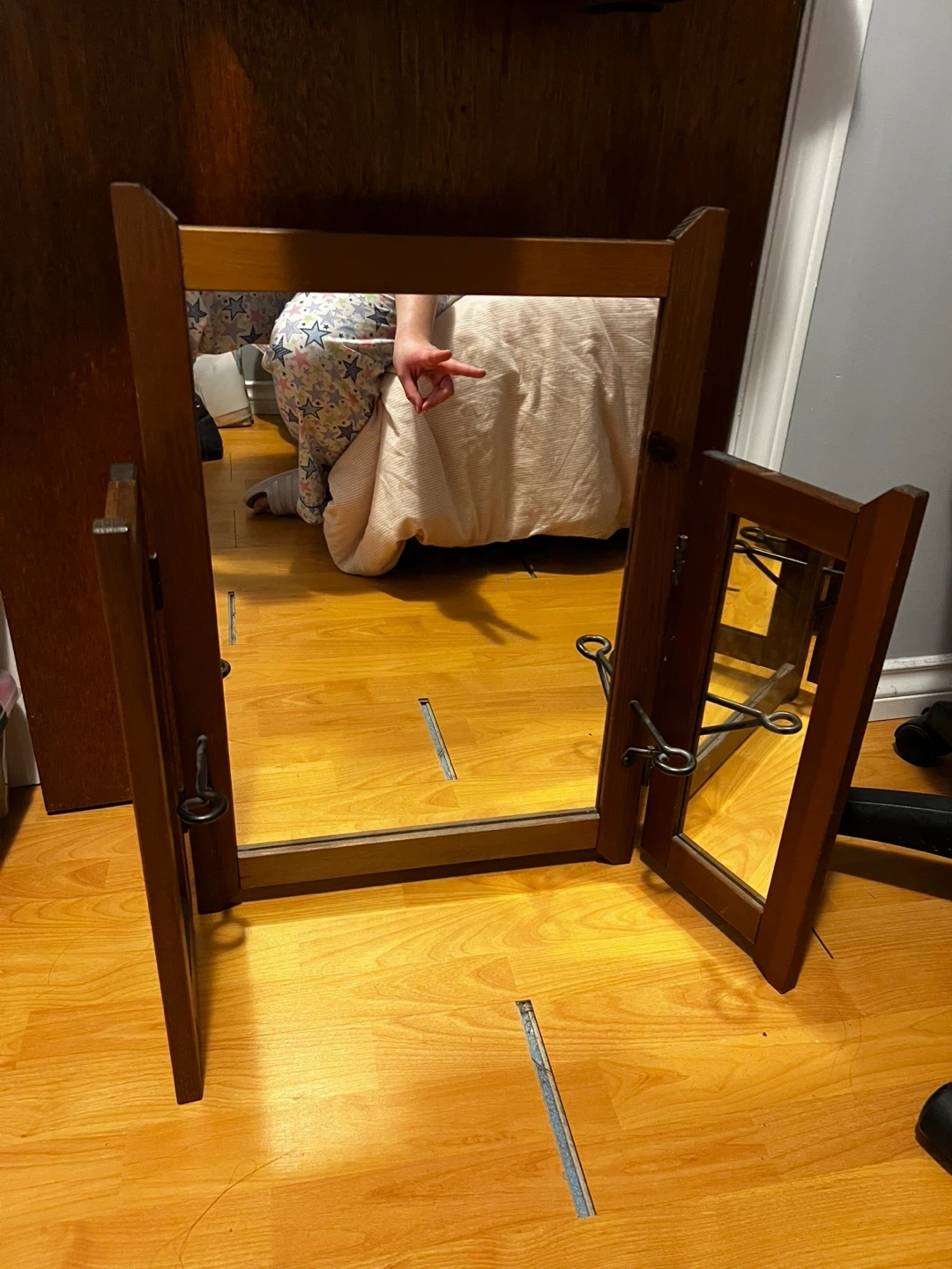 Wooden Tri-fold Vanity Mirror 🥕