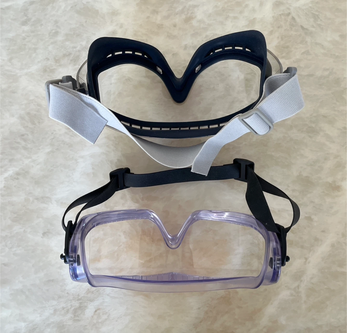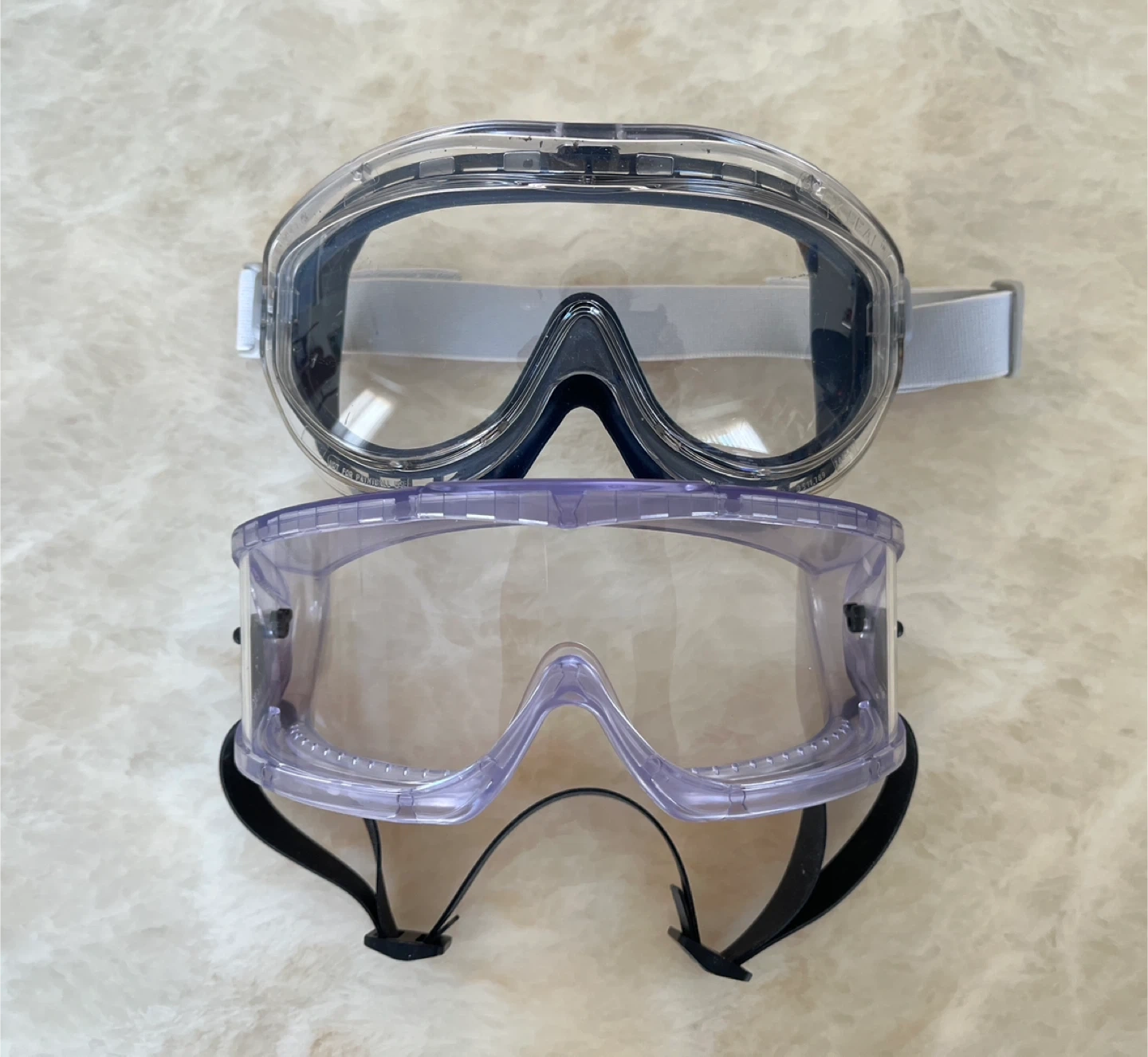 These two lab goggles are essential for lab during experiments or when working in hazardous environments. They offer a secure fit and clear visibility.