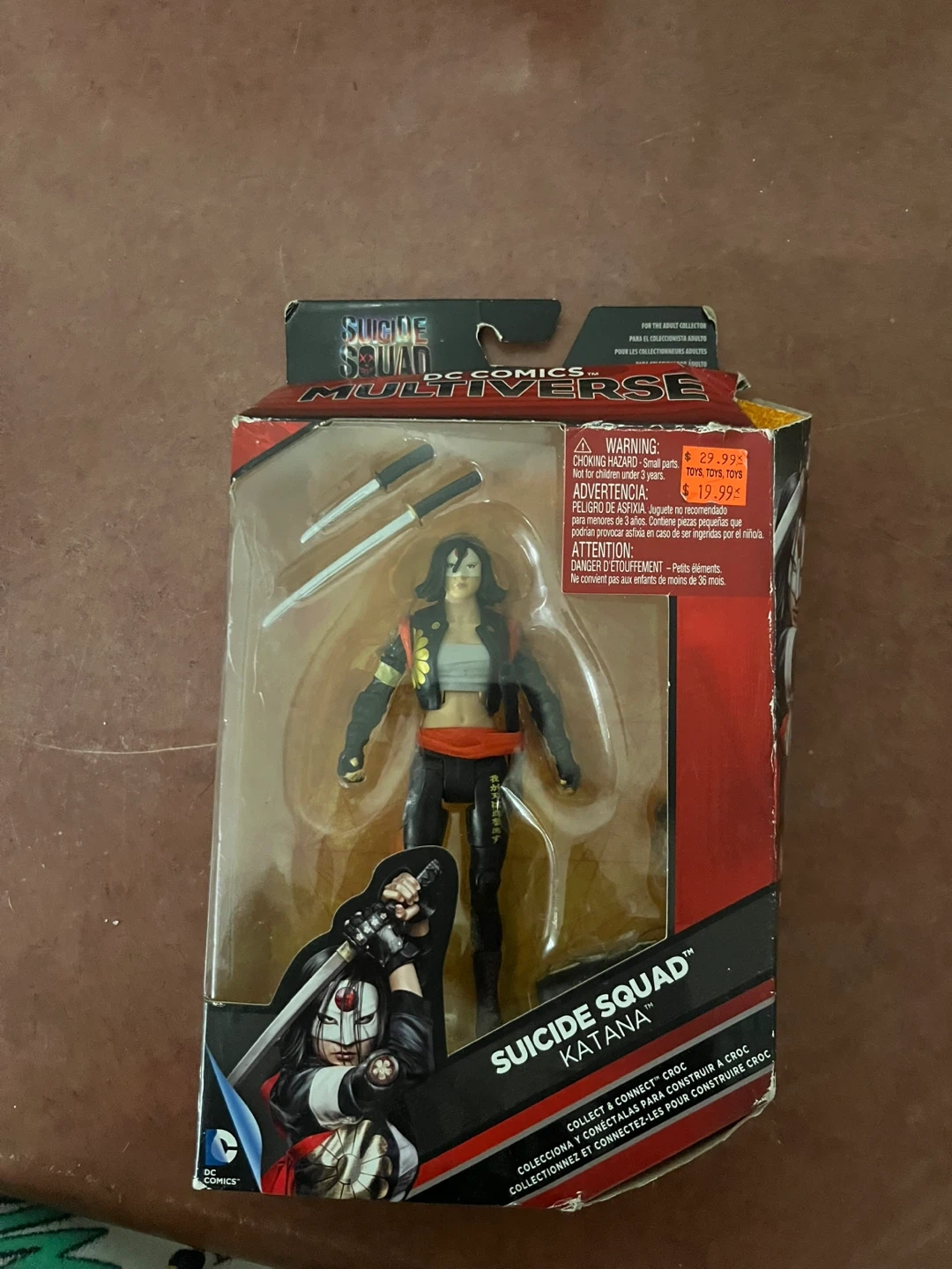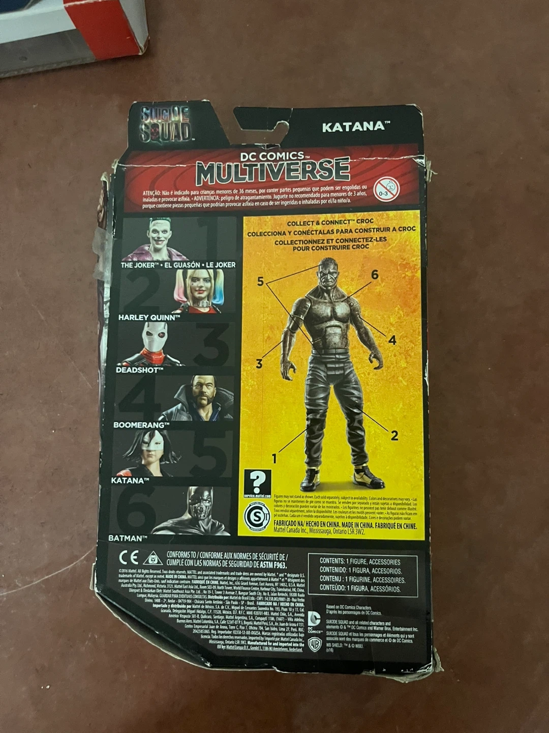 This is the DC Comics Multiverse Suicide Squad Katana action figure. It includes Katana and two swords. The figure is part of the Collect & Connect Croc build-a-figure series.