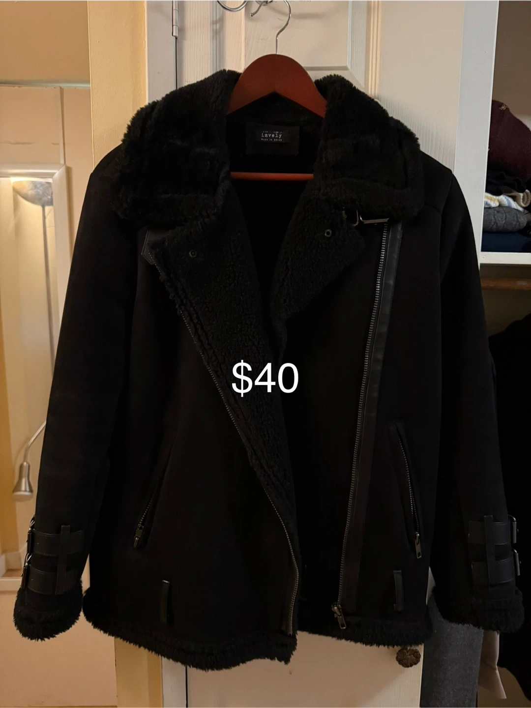 Black Faux Fur Lined Moto Jacket