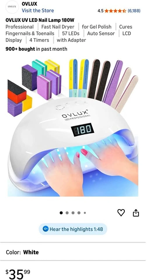 Professional Fast Nail Dryer for Gel Polish Cures Fingernails & Toenails 57 LEDs Auto Sensor LCD Display 4 Timers with Adapter