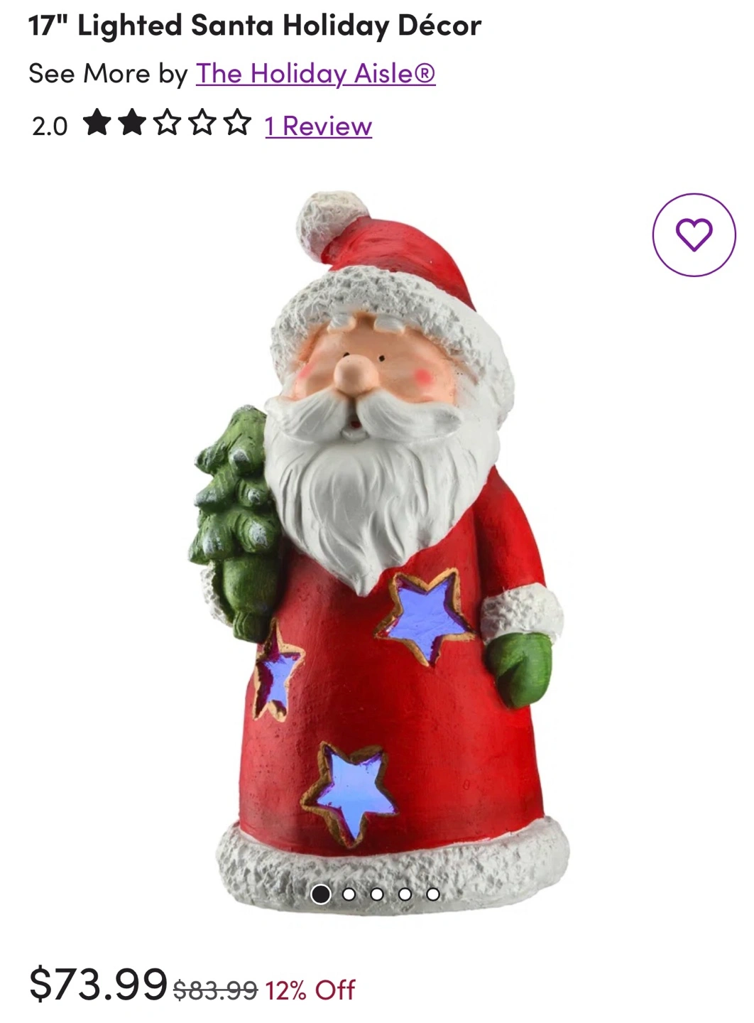 Wayfair Santa 17 inches tall for $35 original priced $75