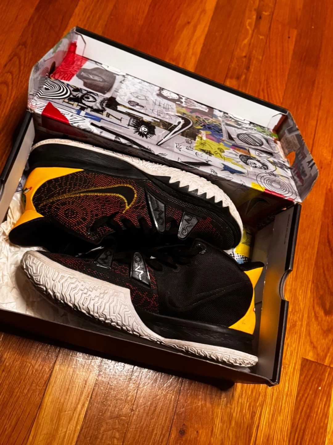 Selling a pair of Nike Kyrie ‘Roswell Rayguns’ sneakers in black and red. They come with the original box. These are great for basketball or everyday wear!