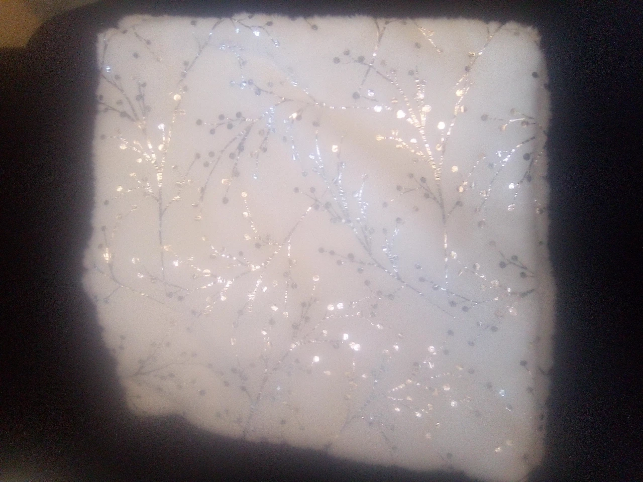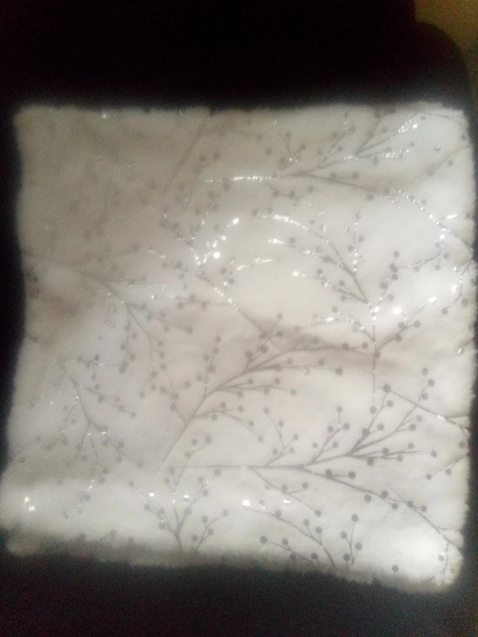Bought these at Christmas time and never did use them. My camera isn't that great but they are Beautiful Pillow Covers! zipper on the side and the back is all white. Front is a nice soft white with silver design.