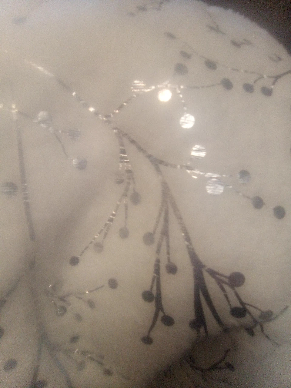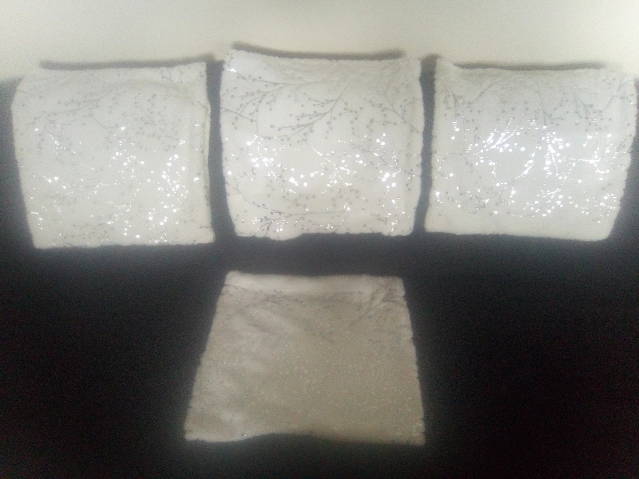 Bought these at Christmas time and never did use them. My camera isn't that great but they are Beautiful Pillow Covers! zipper on the side and the back is all white. Front is a nice soft white with silver design.