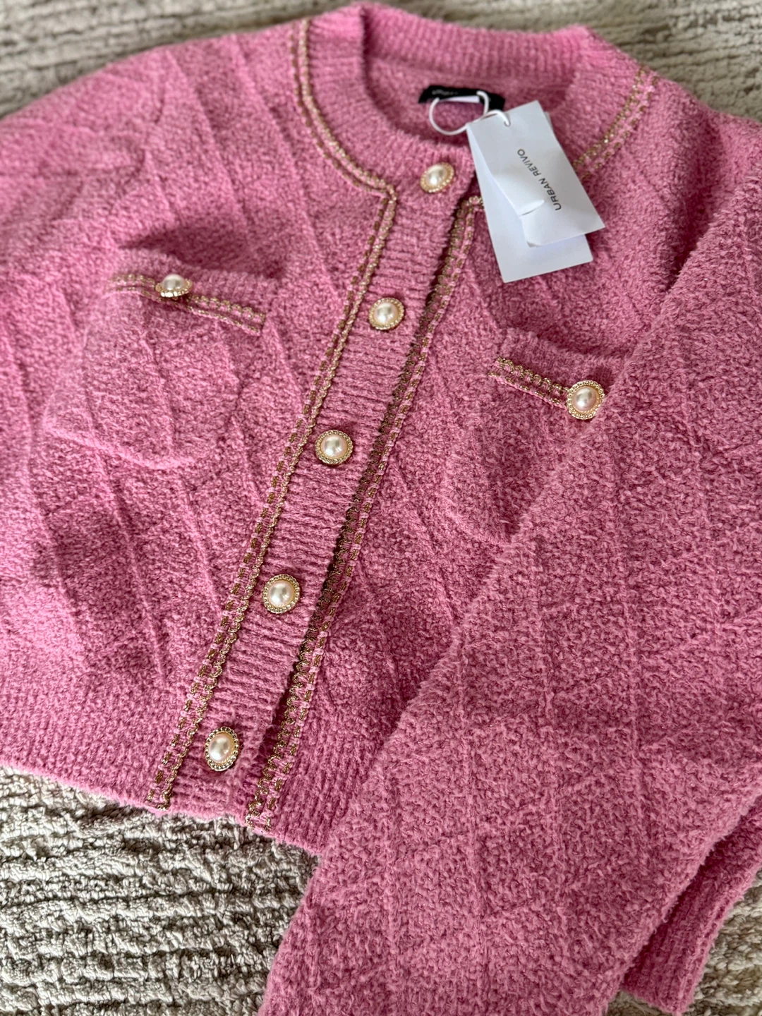 Selling a super cute pink cardigan from Urban Revivo! It's a size L and has some lovely pearl-like buttons and gold detailing. Perfect for adding a pop of colour to your wardrobe!