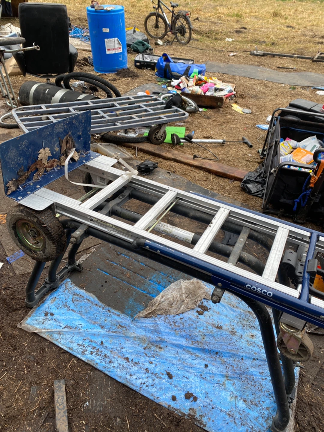 It's a Cosco heavy-duty dolly with wheels. This dolly is designed for moving large or heavy items. It's built for durability and ease of use.