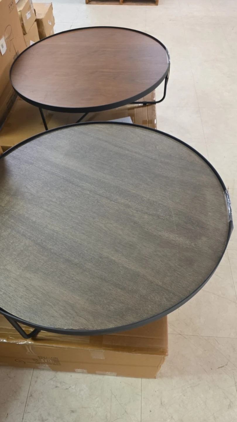 Round Coffee Table - Modern Wood & Black Metal