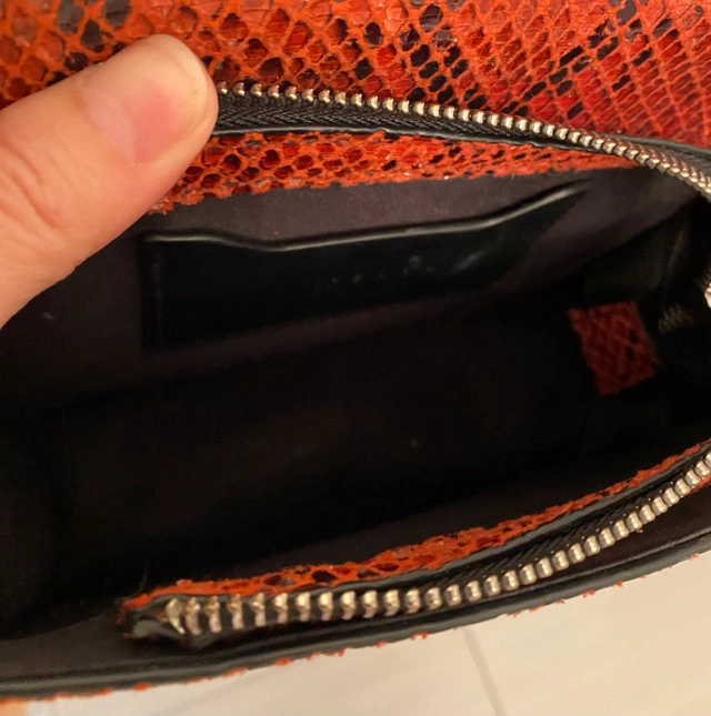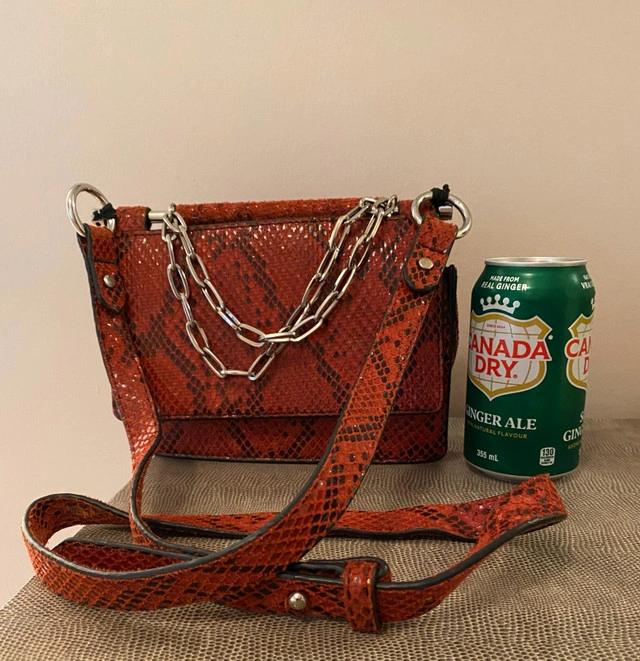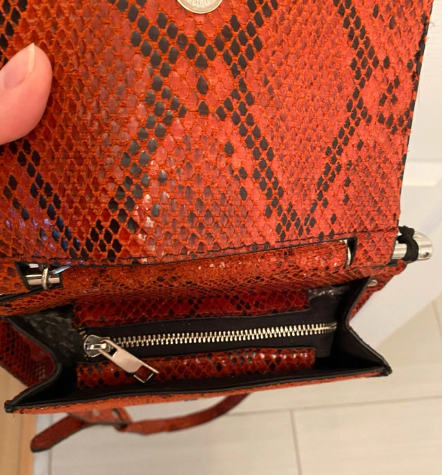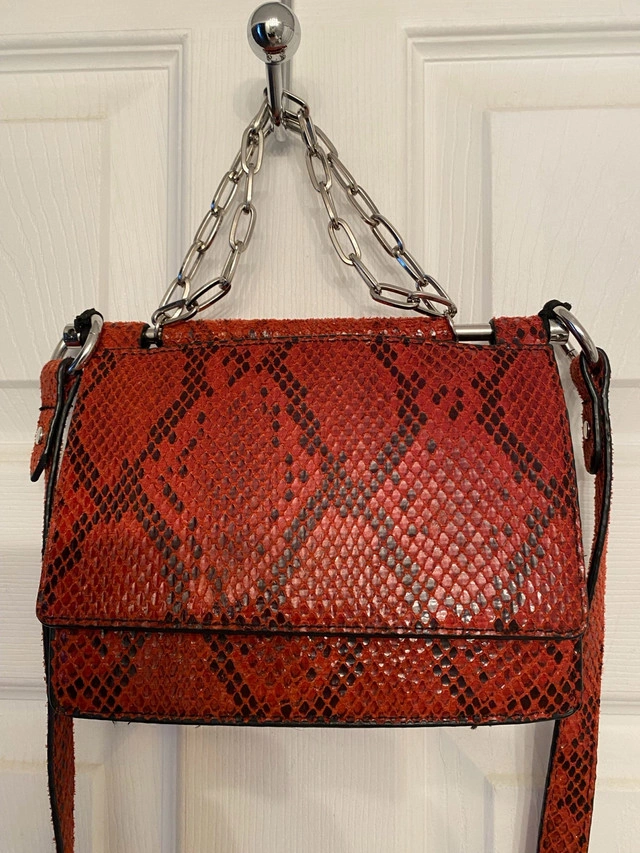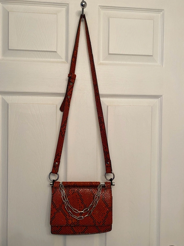 Red snakeskin crossbody bag