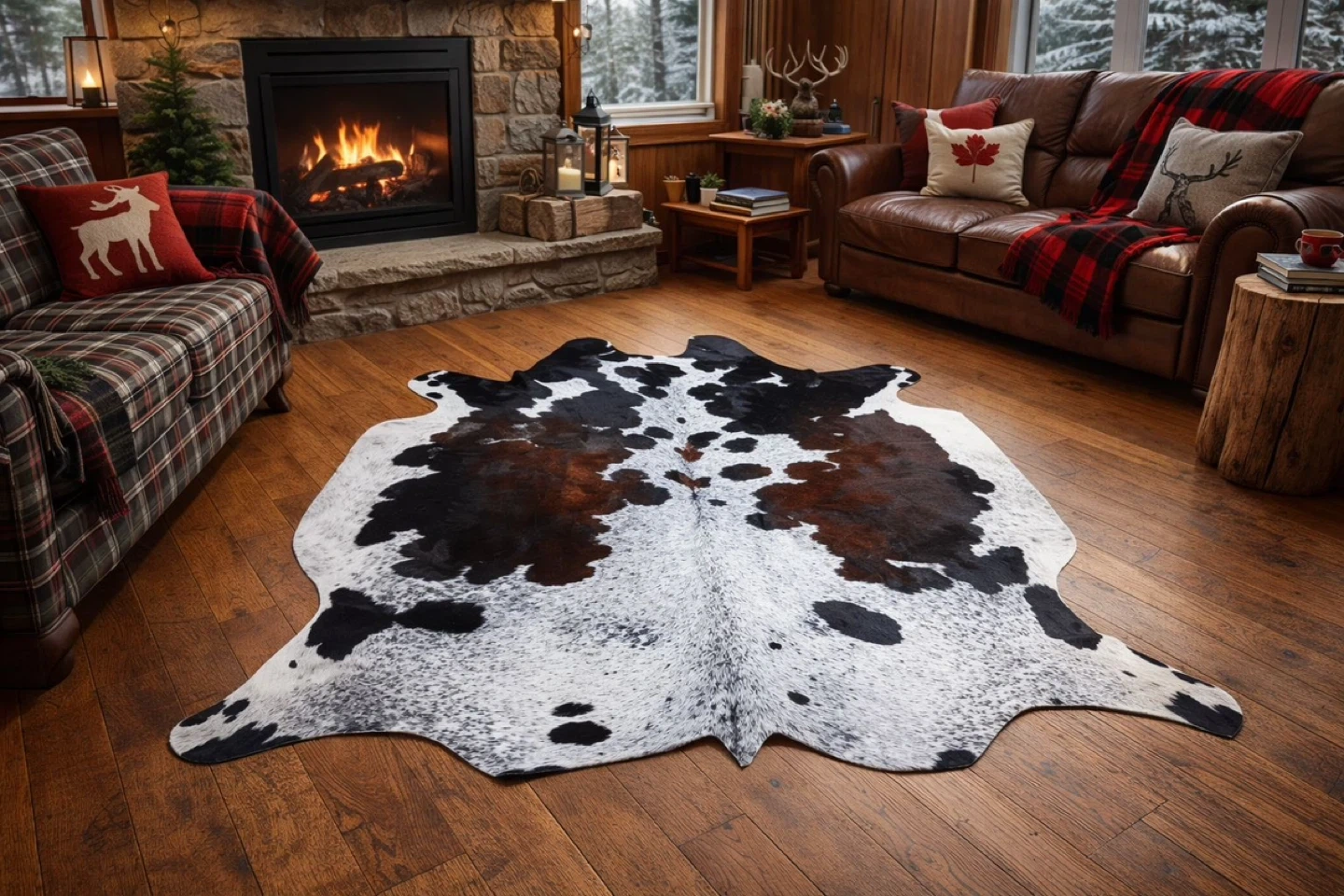Elevate your space with this luxury genuine cowhide rug, crafted from 100% authentic natural hide. Featuring a striking tricolor blend of black, white, and rich brown, this rug offers timeless elegance and modern sophistication.