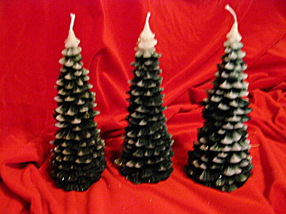 Three size of colorful Christmas Trees and old St. Nick himself, ready to be welcomed in your home.