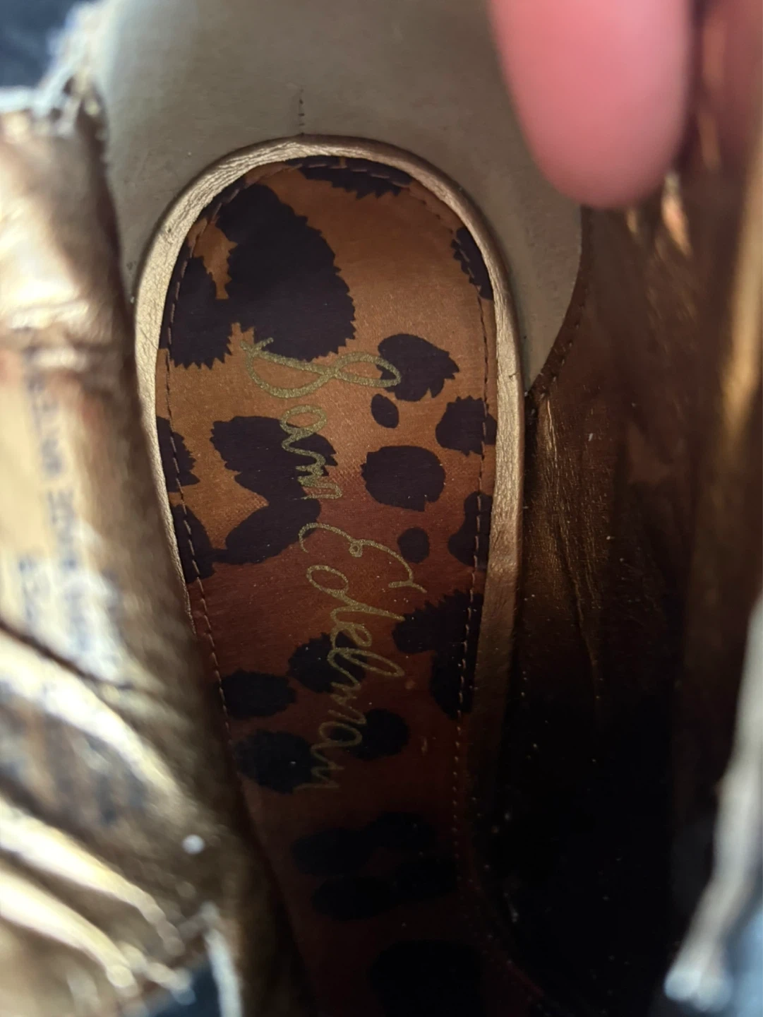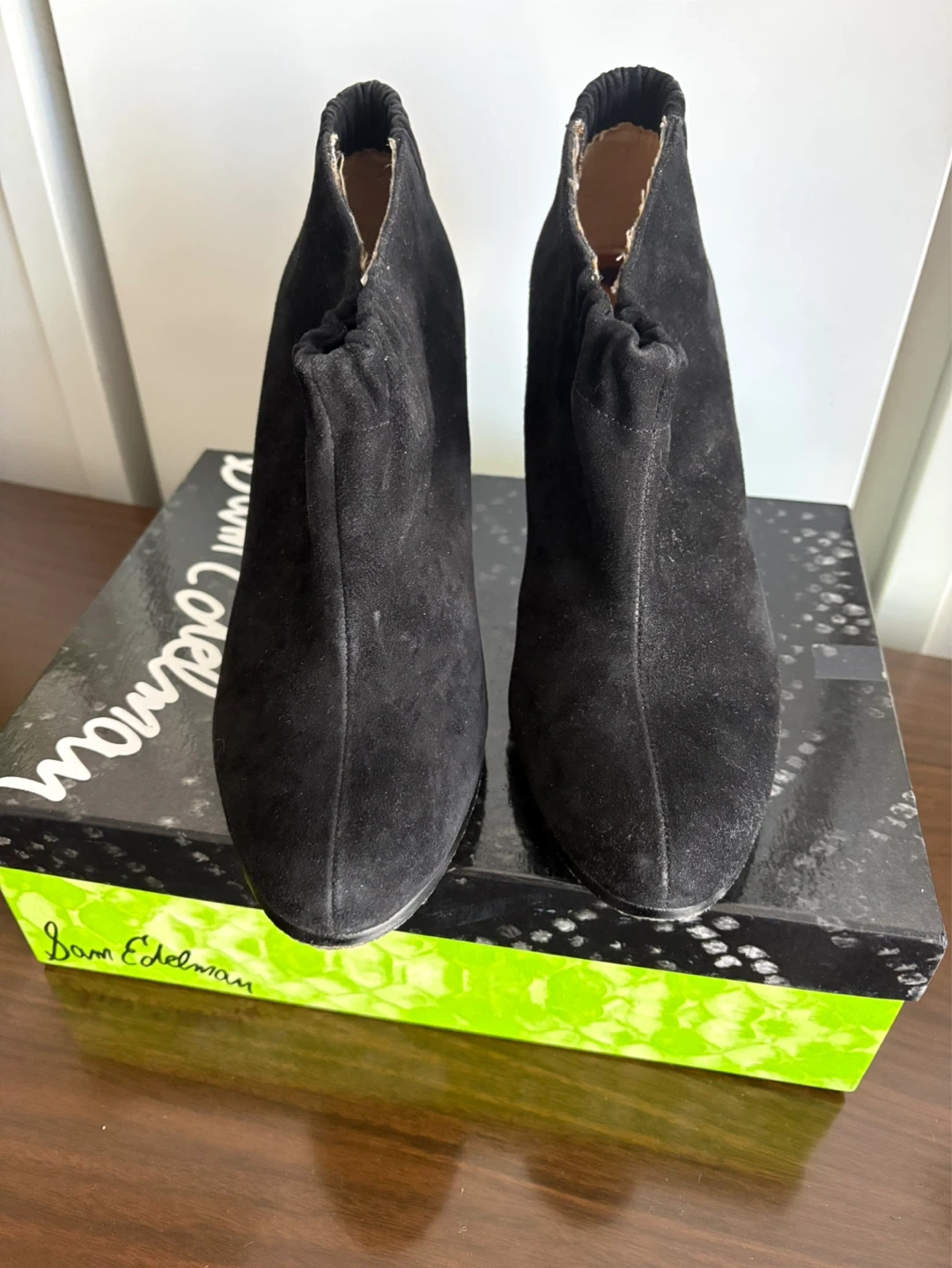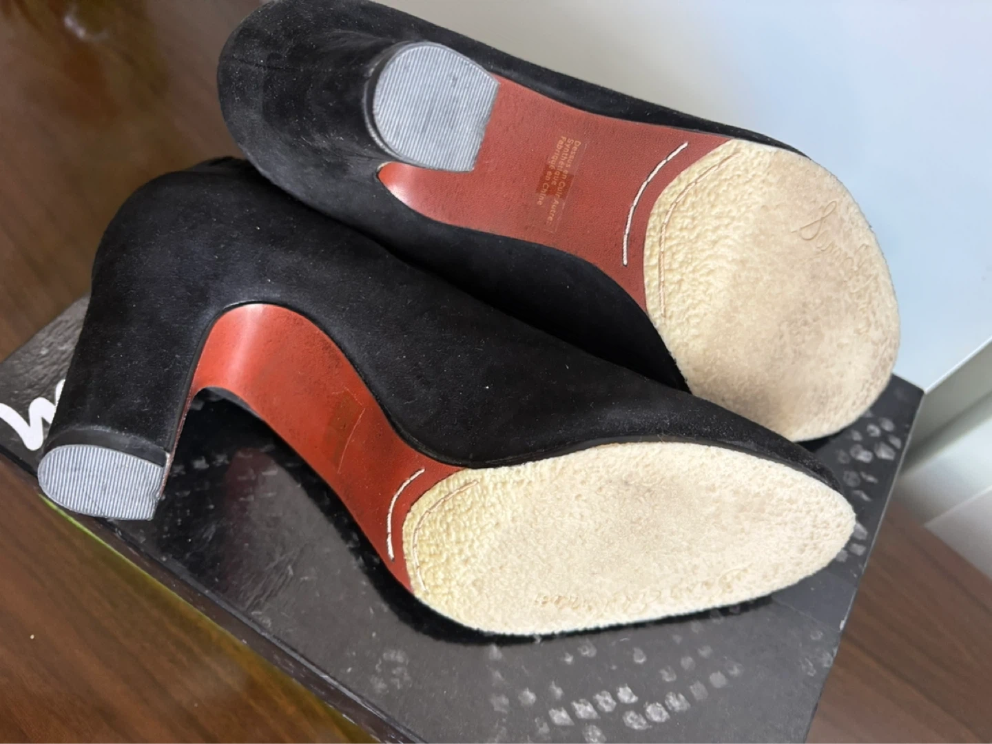 Man-made materials inside of shoe with suede real leather at exterior. A bit of rouging around the ankle for a nice fit. Available for pick up near St. Lawrence market.