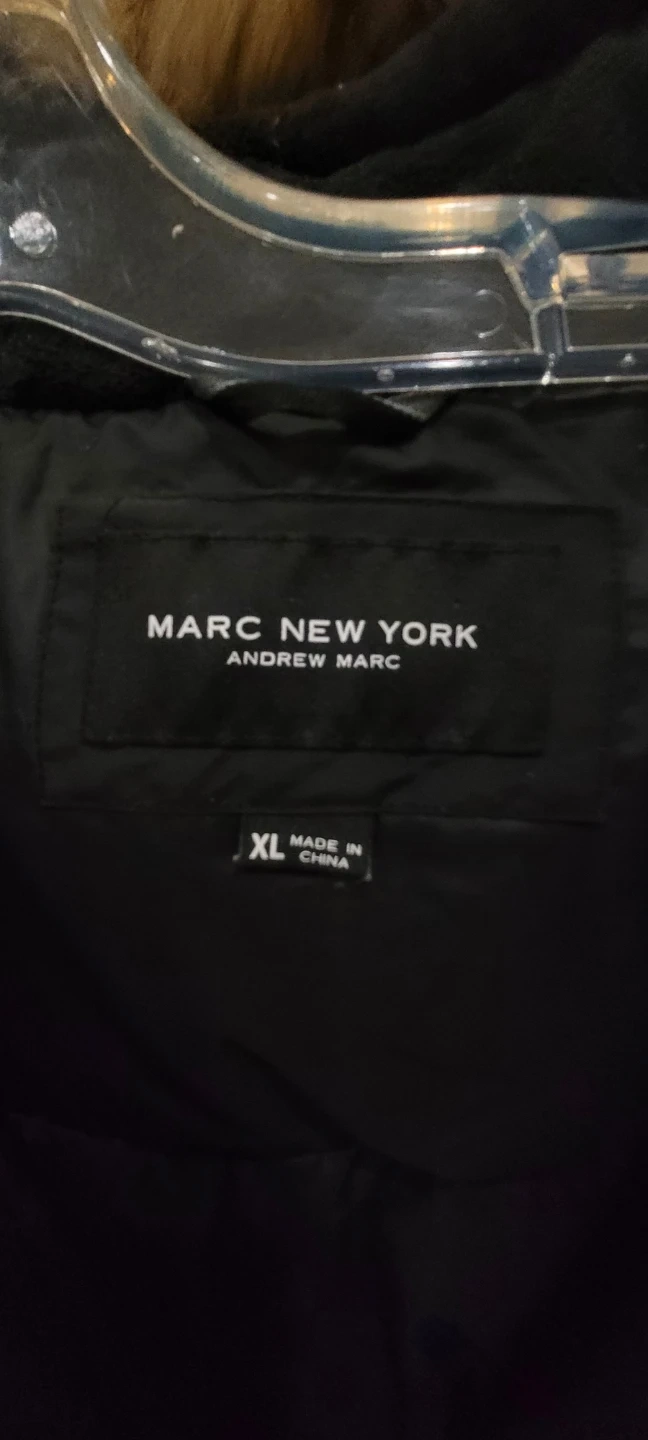Marc New York Andrew Marc black bomber jacket with a faux fur trimmed hood. Size XL. Made in China. This jacket's warm and stylish design makes it great for colder weather!