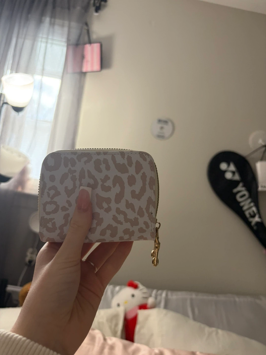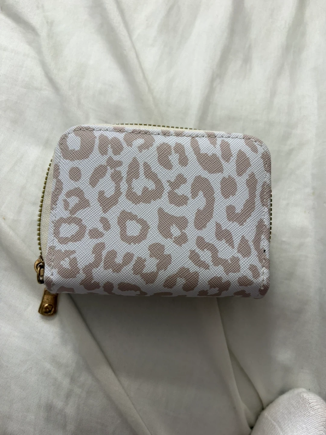 Gently used cheetah print wallet! Pastel brown with white background and gold zippers makes it extra cute! Spacious for lots of cards and cash and takes up little space in your purse or pocket! Selling to pay tuitions! Pick up dt Toronto
