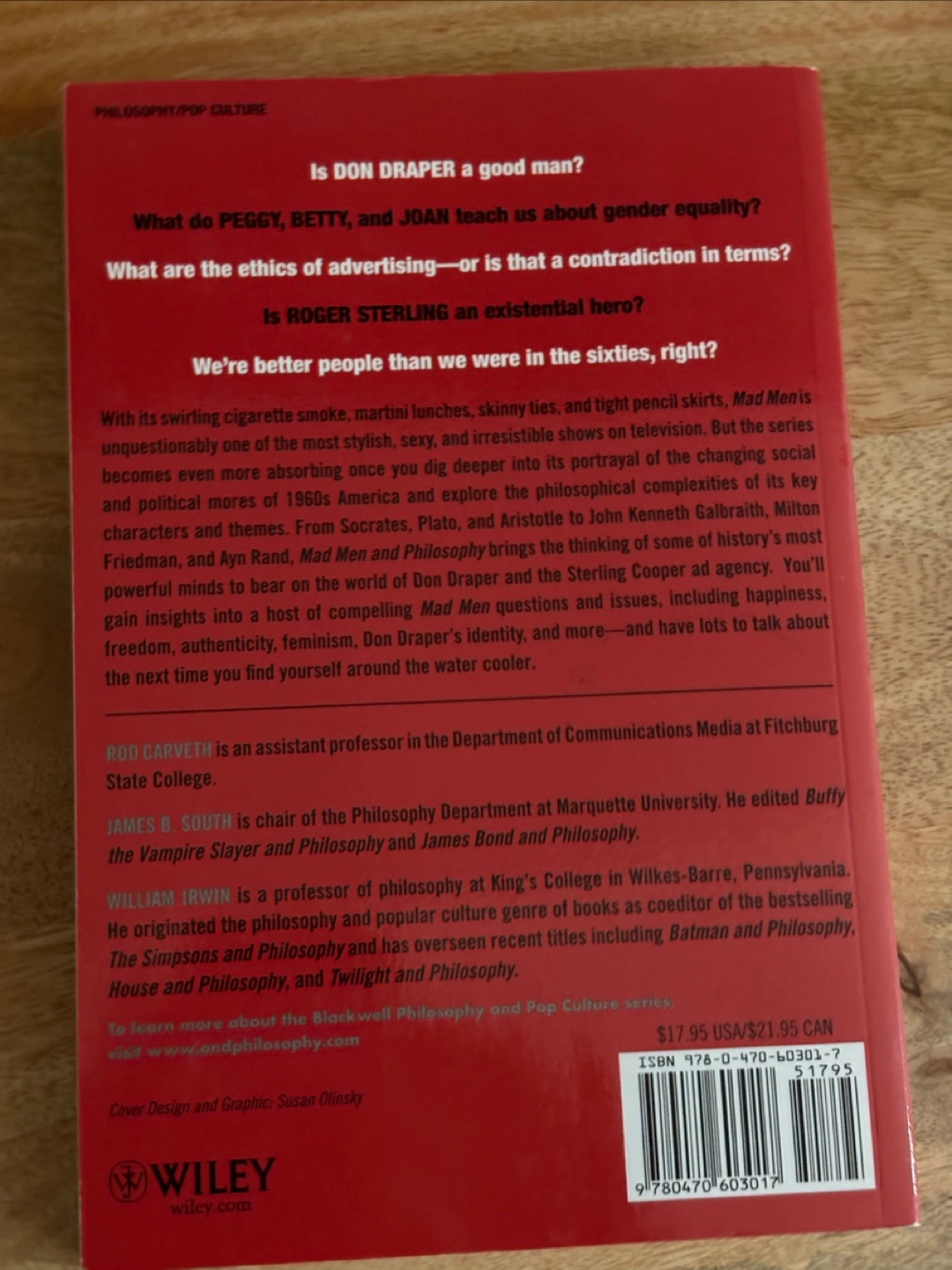 Selling the book Mad Men and Philosophy. It is part of the Blackwell Philosophy and Pop Culture Series. This book delves into the philosophical complexities of the Mad Men TV series, exploring themes of identity, happiness, and freedom. A great read for fans of the show and philosophy alike