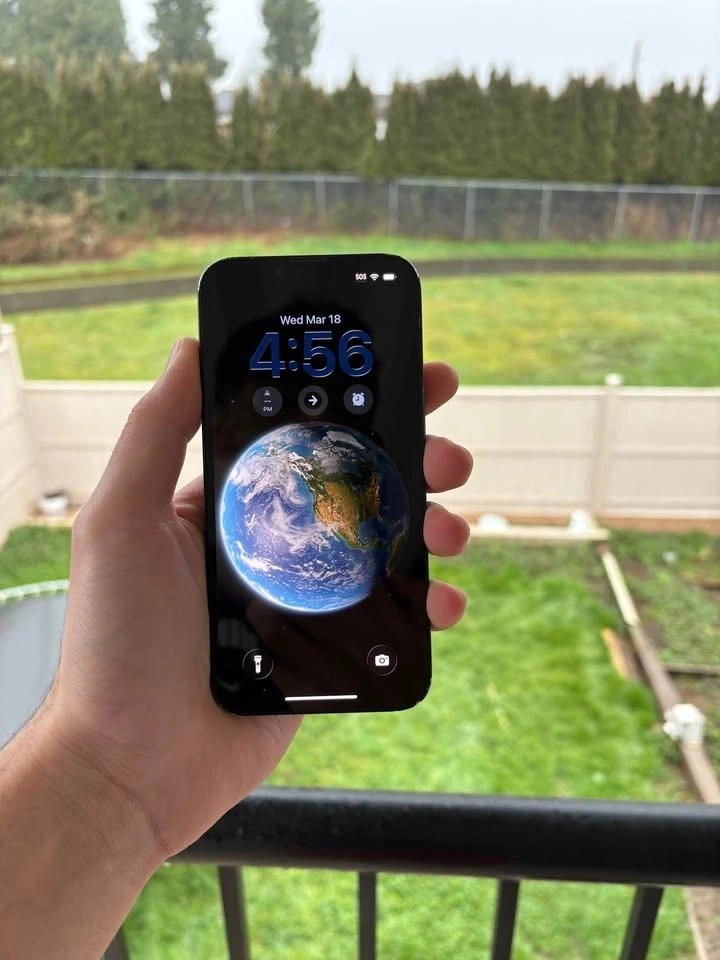 Shows scratches on the screen and frame. Still a great phone for teens.
