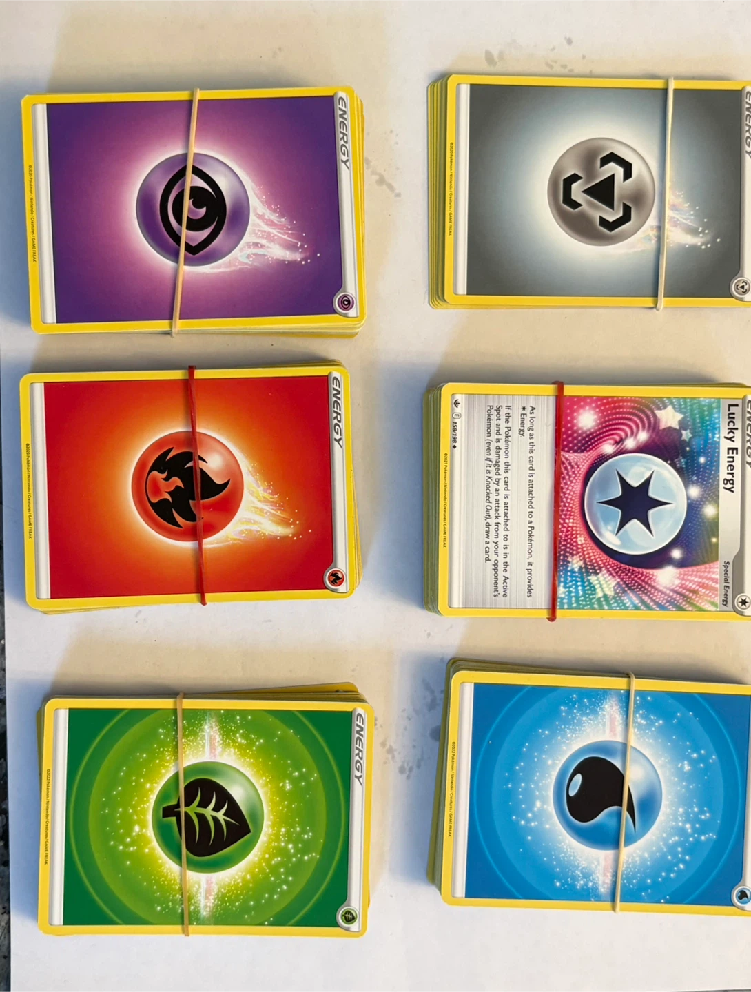 The cards are bundled based on energy types. More pictures available for serious buyers