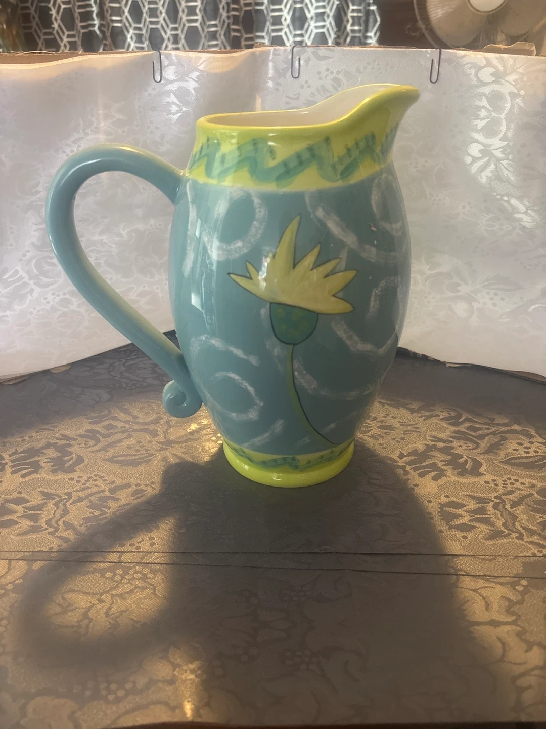 Decorative Ceramic Pitcher with Floral Design