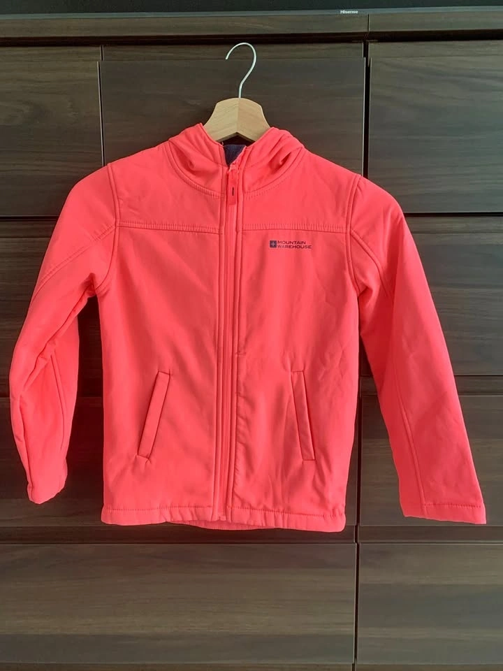 This sharp pink jacket is easy to see from a distance. It's in excellent condition, seldom worn, and fits kids aged 7-8 years. The jacket is water and wind resistant with a soft fleece lining and breathable membrane to keep warm. It has 2 side pockets and is suitable for windy or rainy days. Machine washable and comes from a smoke-free, pet-free family. Pick up in Willoughby, Langley. CASH ONLY.