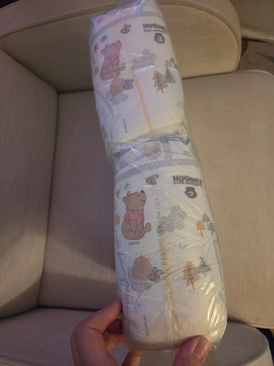 A package of Huggies Little Snugglers diapers in size 3. The pack contains two bundles of 66 diapers total for your little one.