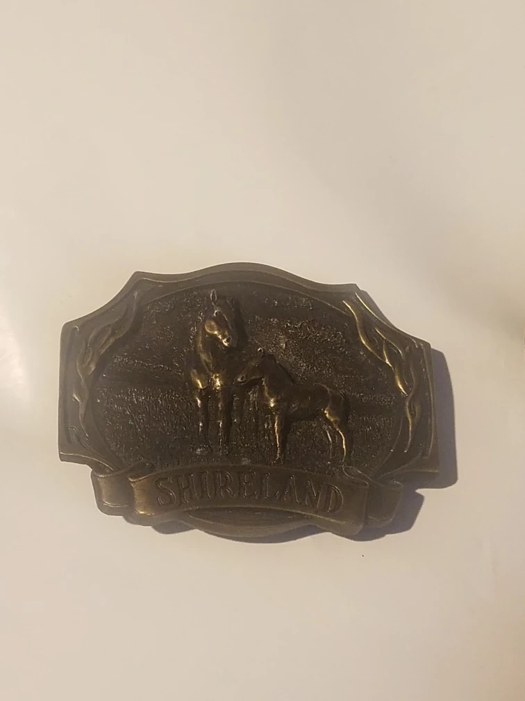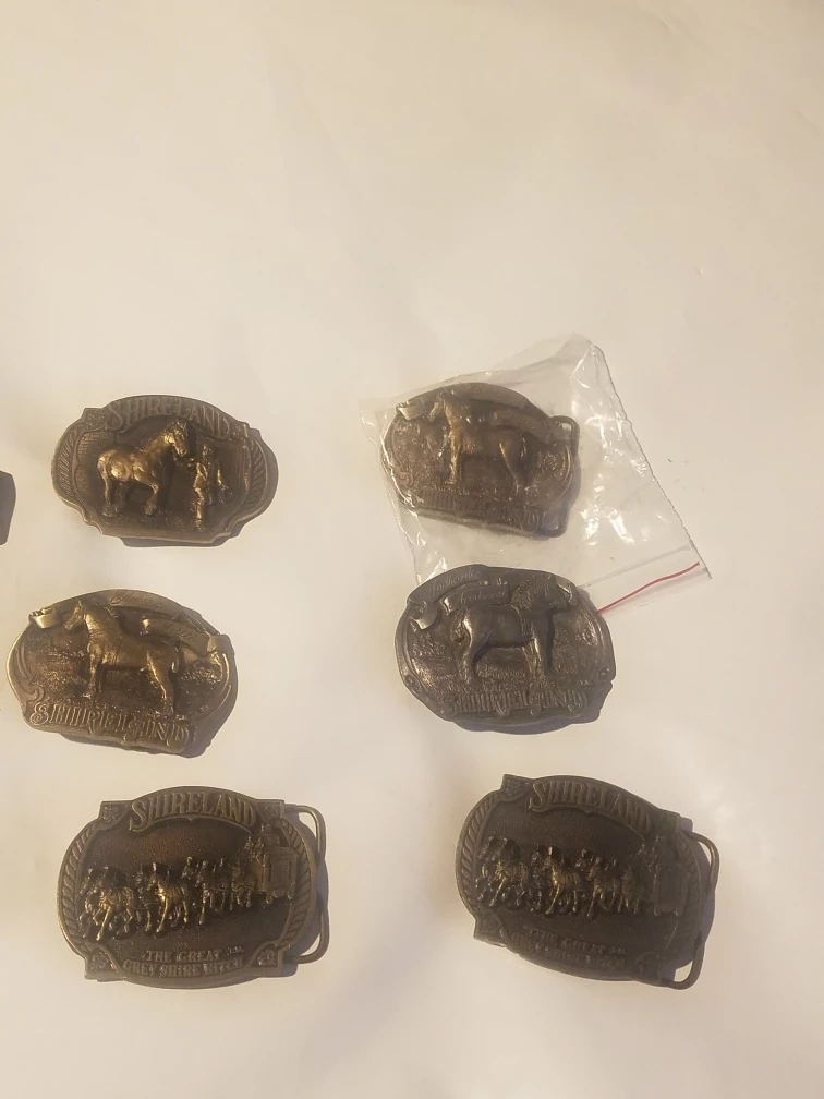 vintage belt buckles, each featuring a Shireland design with horses. Metal construction. Some buckles are individually packaged. brand new 7 available $15 each