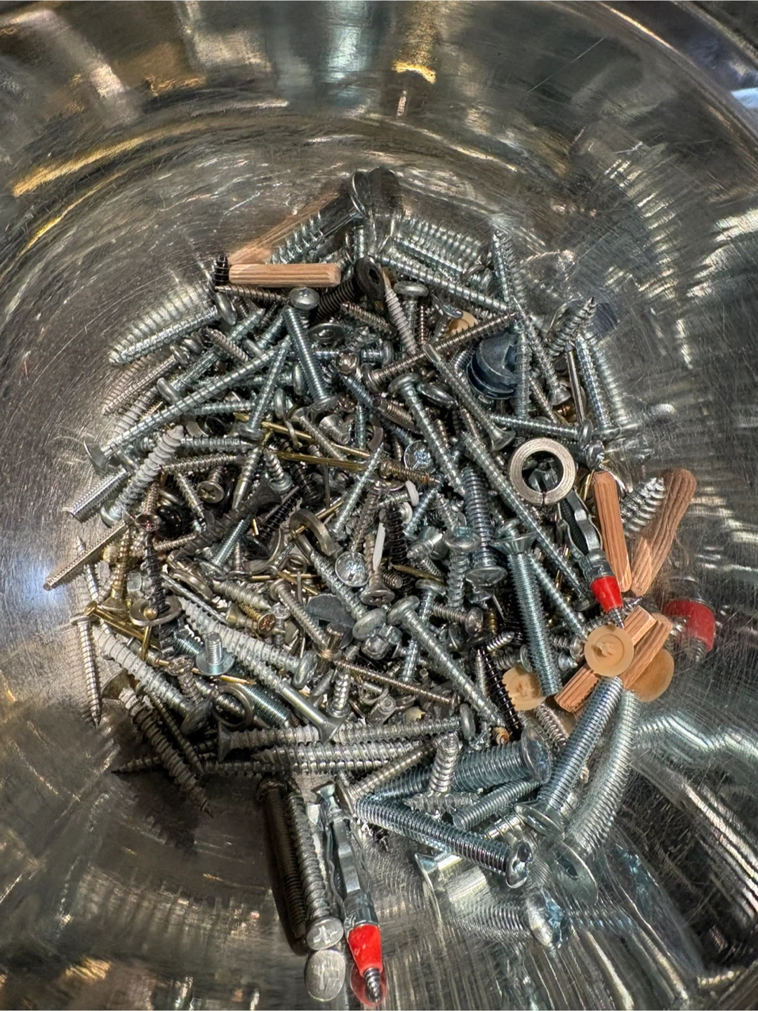 A large collection of assorted screws, nails, and wall anchors is available. This collection includes various sizes and types for different projects. These fasteners are great for DIY repairs and construction tasks.