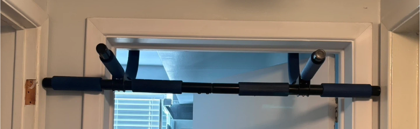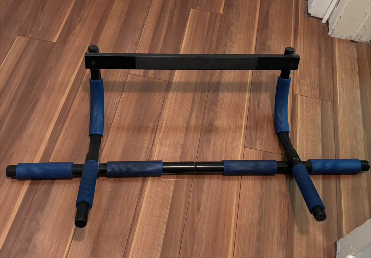 Multi function doorway mount pull up bar. Hangs on door frame or lay on floor for full body workout. Upper body , sit ups and push ups etc.