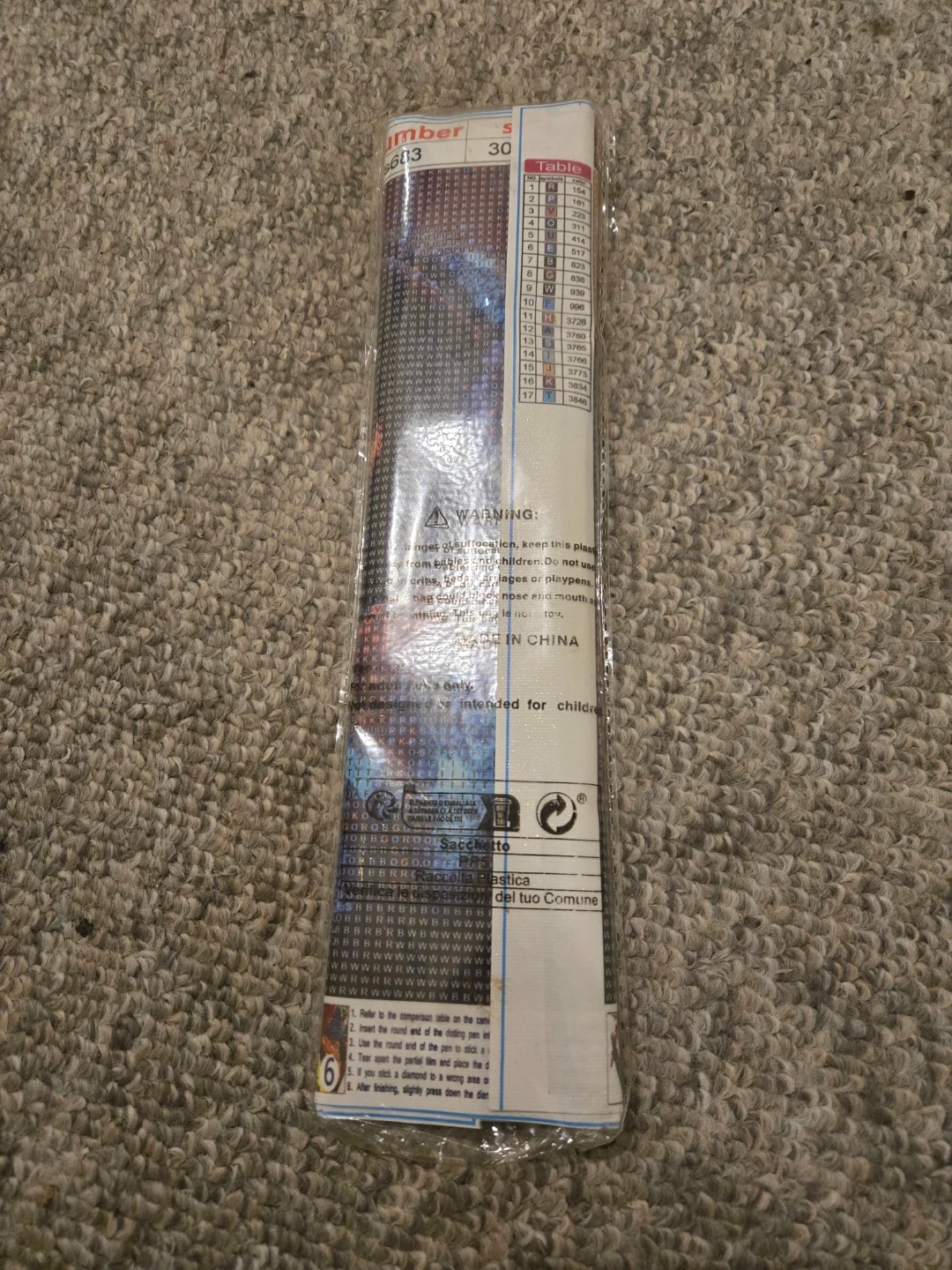 This diamond painting kit features a design with item number 5683 and size 30. It includes a comparison table and instructions for applying the diamonds. This kit is not intended for children.