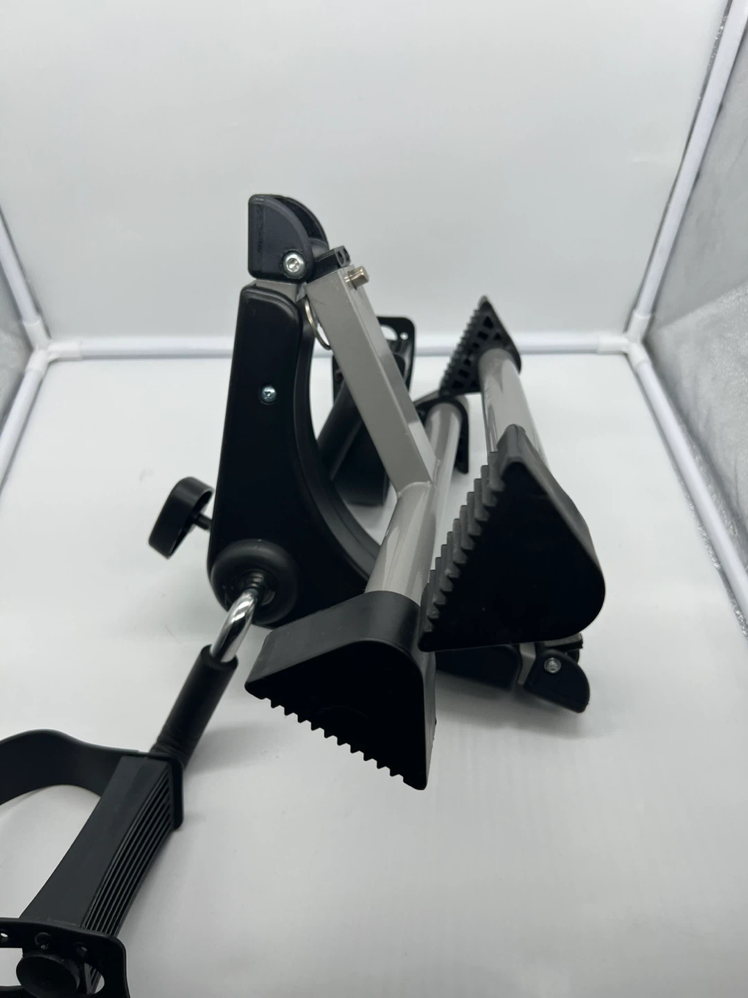 Foldable, compact, and portable design allows it to be easily stored or fitted under a desk (pull the rings to fold the legs)